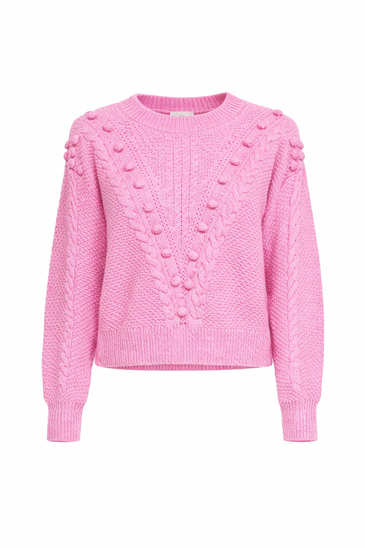 Textural and playful, this cable knit sweater is accented with pom-pom detailing that adds subtle dimension to a classic silhouette. The refined knit keeps the look balanced and wearable.