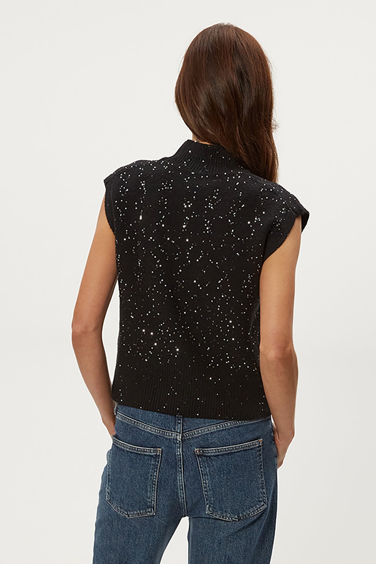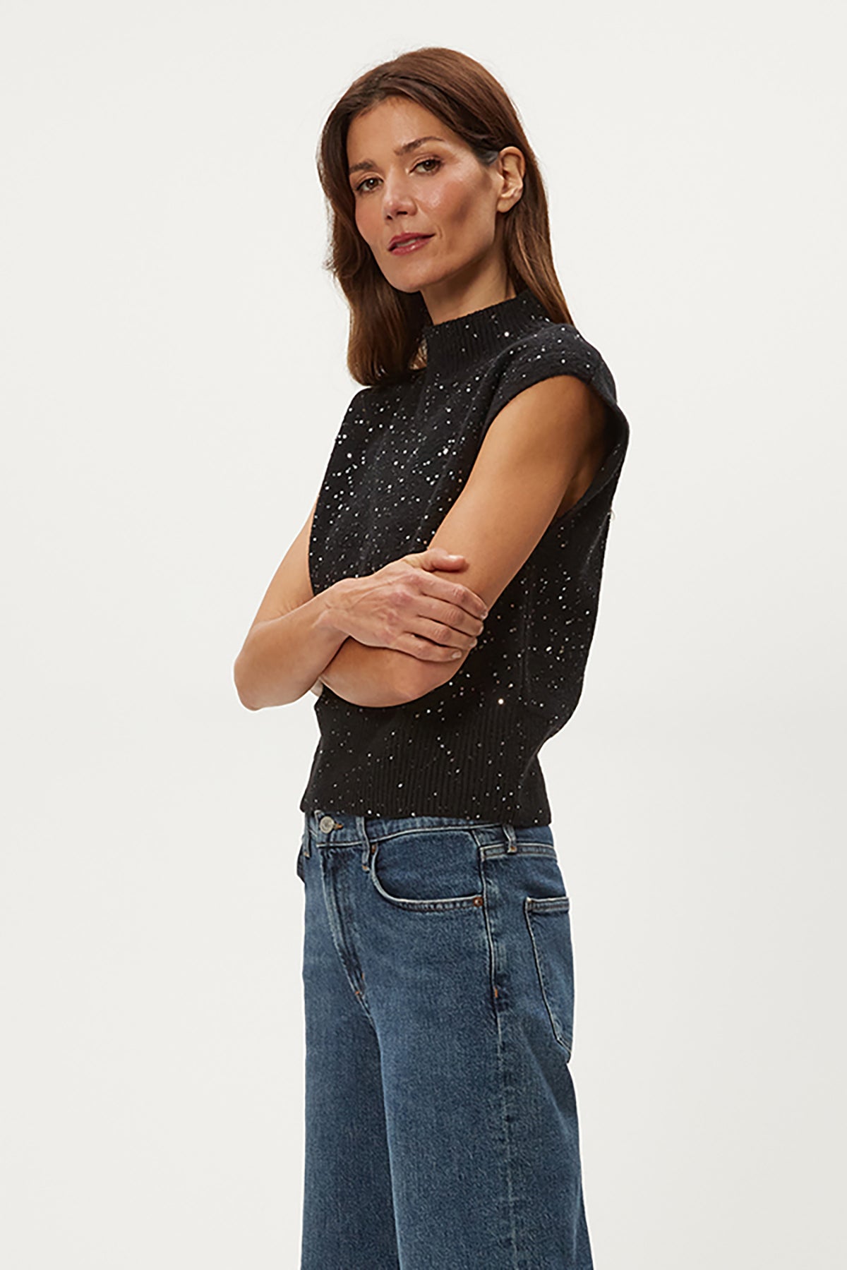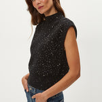 The Raina Mock Neck Sweater brings sparkle and sophistication with its sequin details. The refined mock neck silhouette works beautifully for special occasions or everyday glamour.