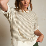 The Rebecca sweatshirt offers a green stripe design with rolled sleeves for a stylish, comfortable look that's easy to wear any day.