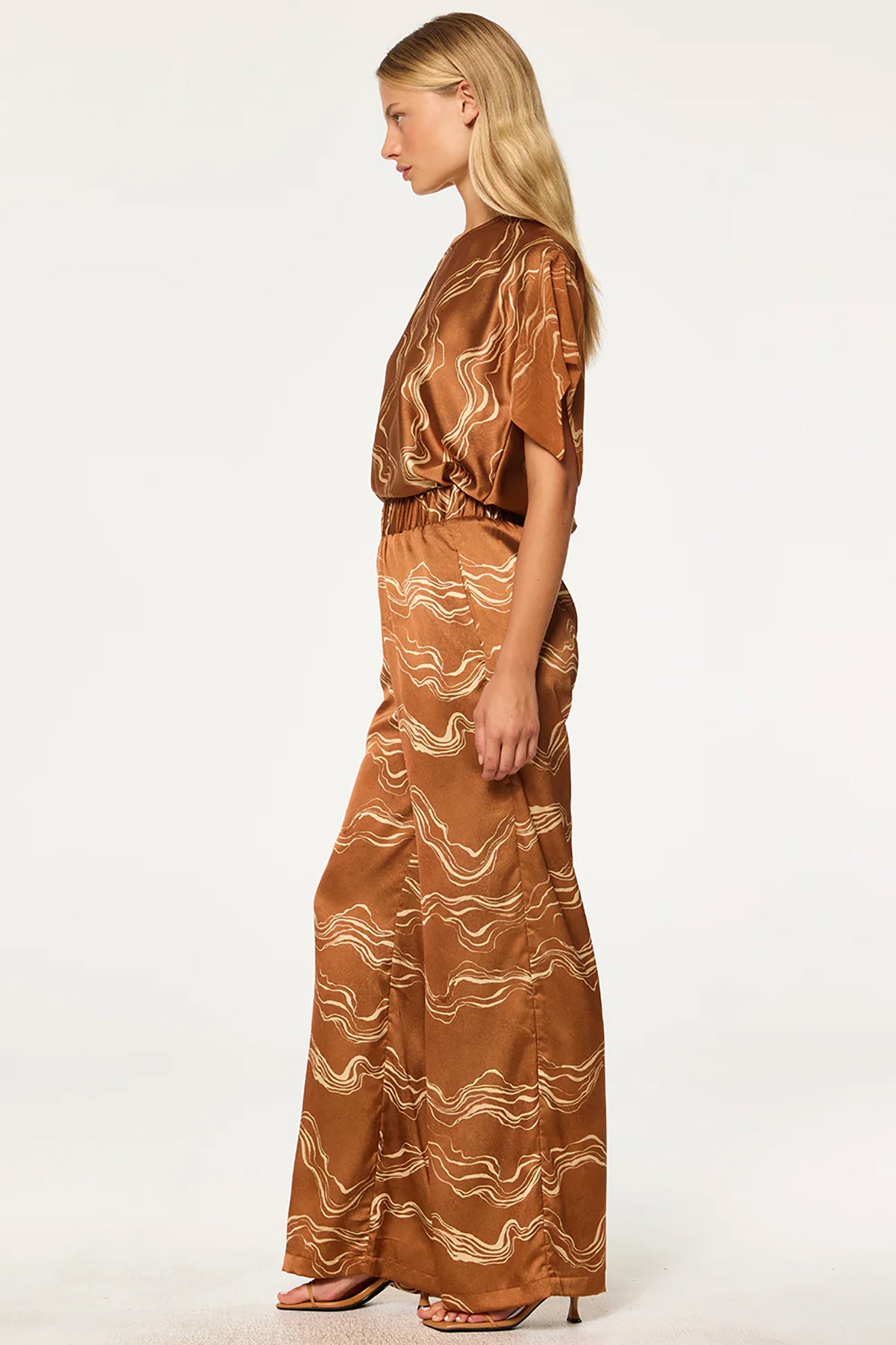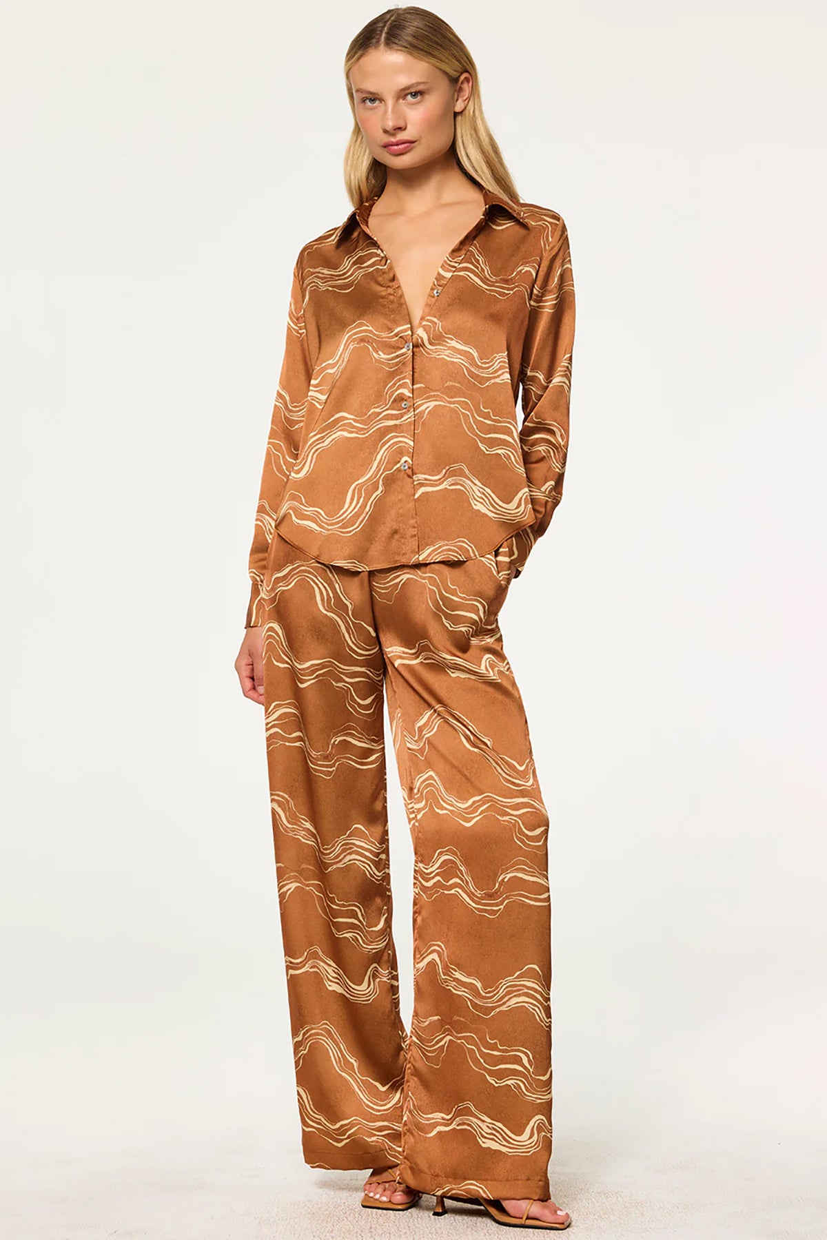 The Reshma Pant is a comfortable satin pull-on with a whimsical pattern for a stylish look.