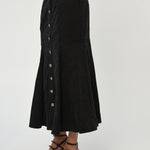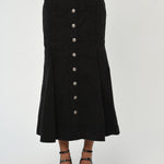 Featuring a button-down front and a flattering mermaid cut, this midi skirt cinches at the waist before flowing gracefully to the hem, creating an elegant silhouette that works for any body type. Crafted from quality materials, it pairs seamlessly with everything from casual tees and sweaters to polished blouses and fitted tops. Whether you're dressing down for the weekend or elevating your workweek look, this timeless piece for every wardrobe!