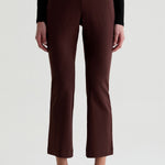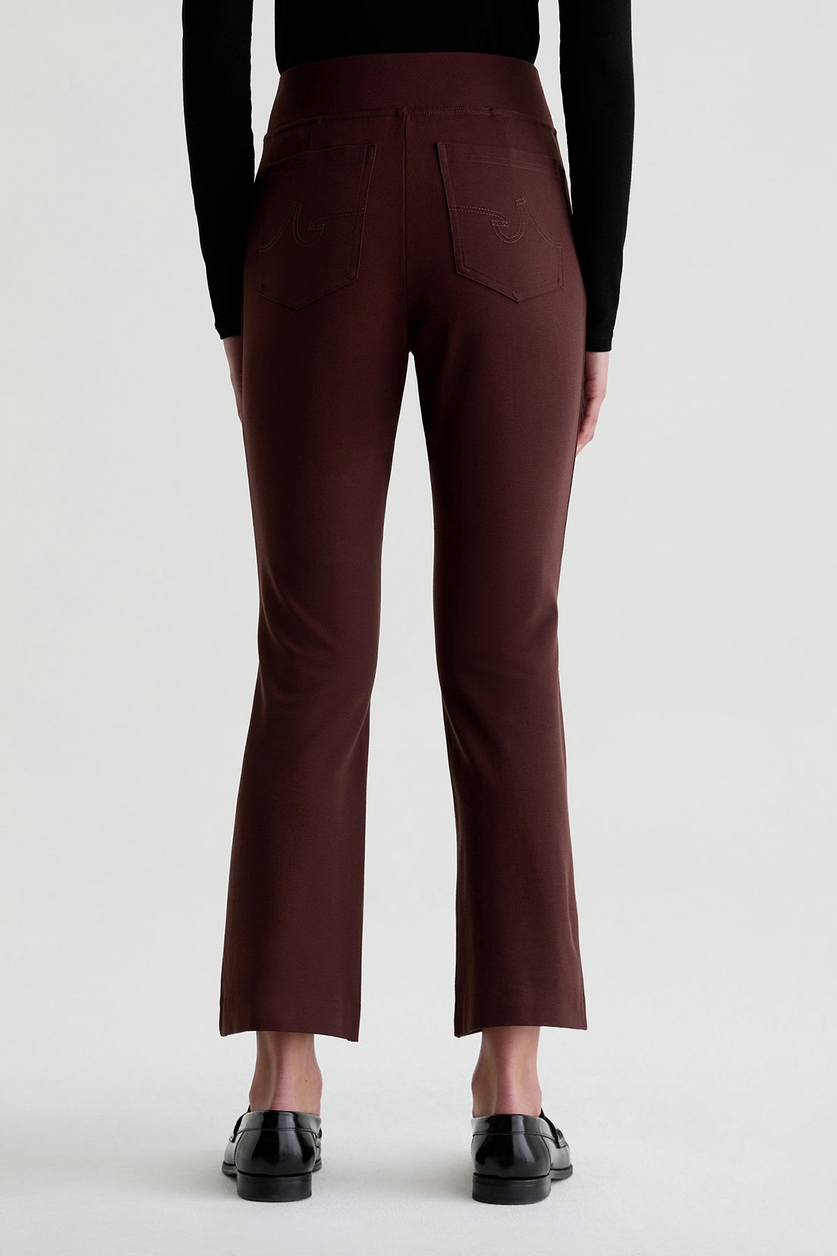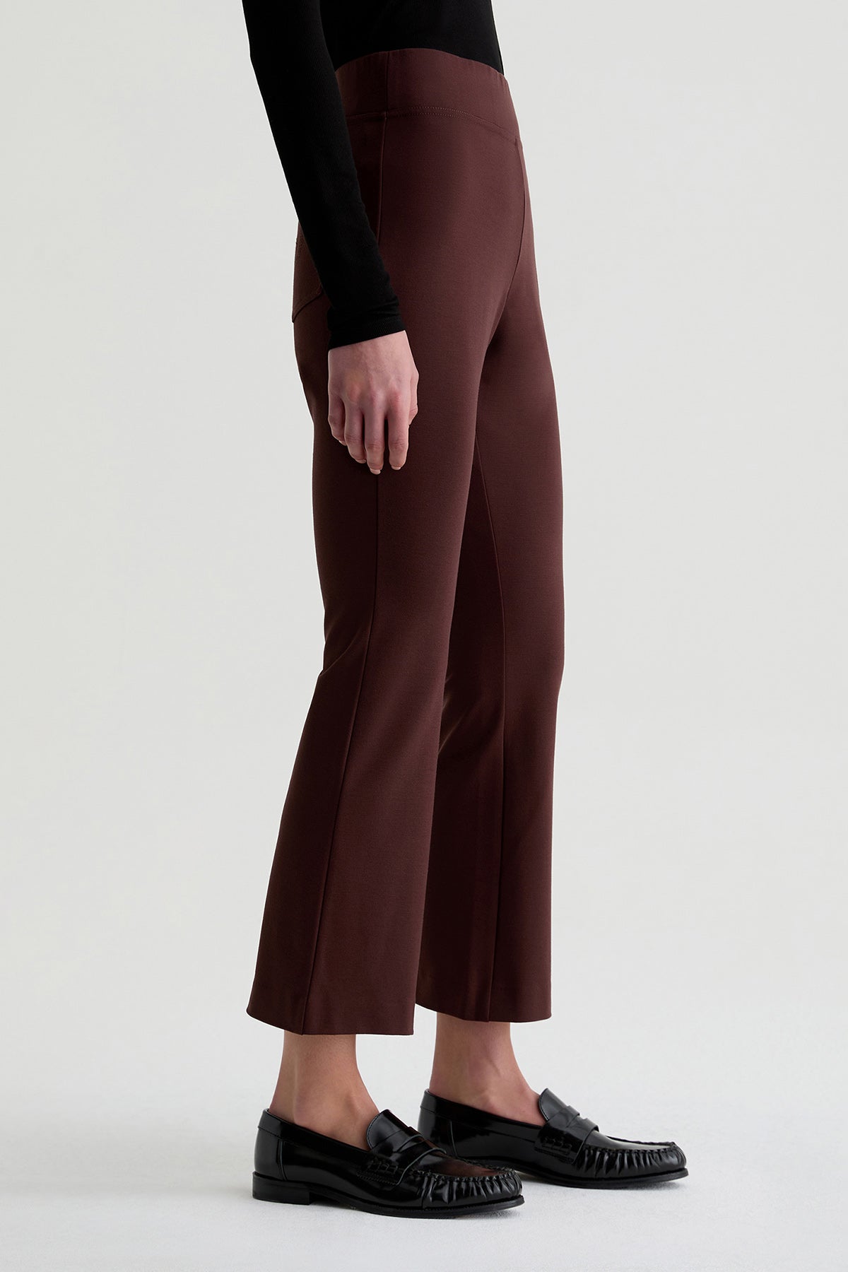 The Salma cropped pull-on pant in coffee bean features a comfortable fit and easy pull-on style. Its cropped length and warm color make it versatile for casual or dressy outfits.