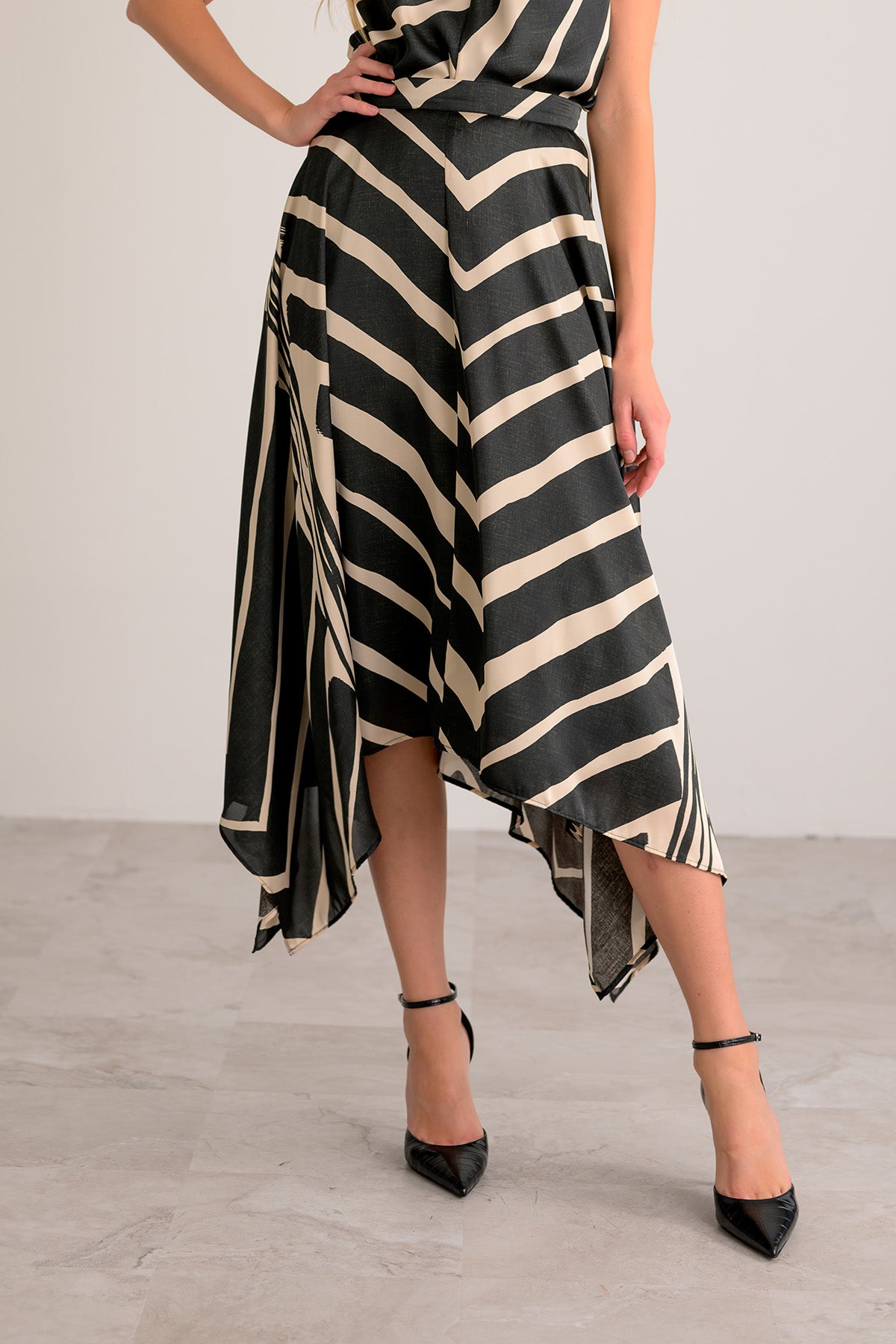 The Samantha Skirt has an asymmetrical hem and a midi length for a modern, stylish look that's easy to wear.