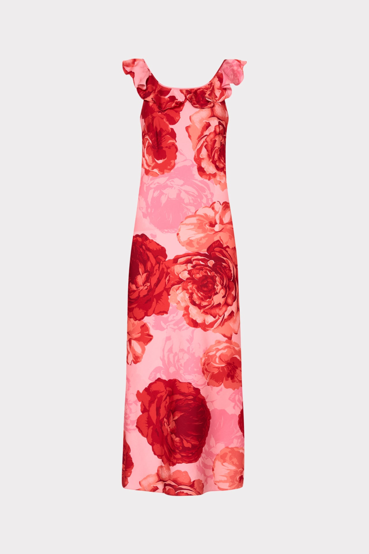 The Scarlett Dress brings feminine detail with its soft ruffle neckline and expressive print. Designed with fluid movement and flattering structure, it feels effortless yet refined.