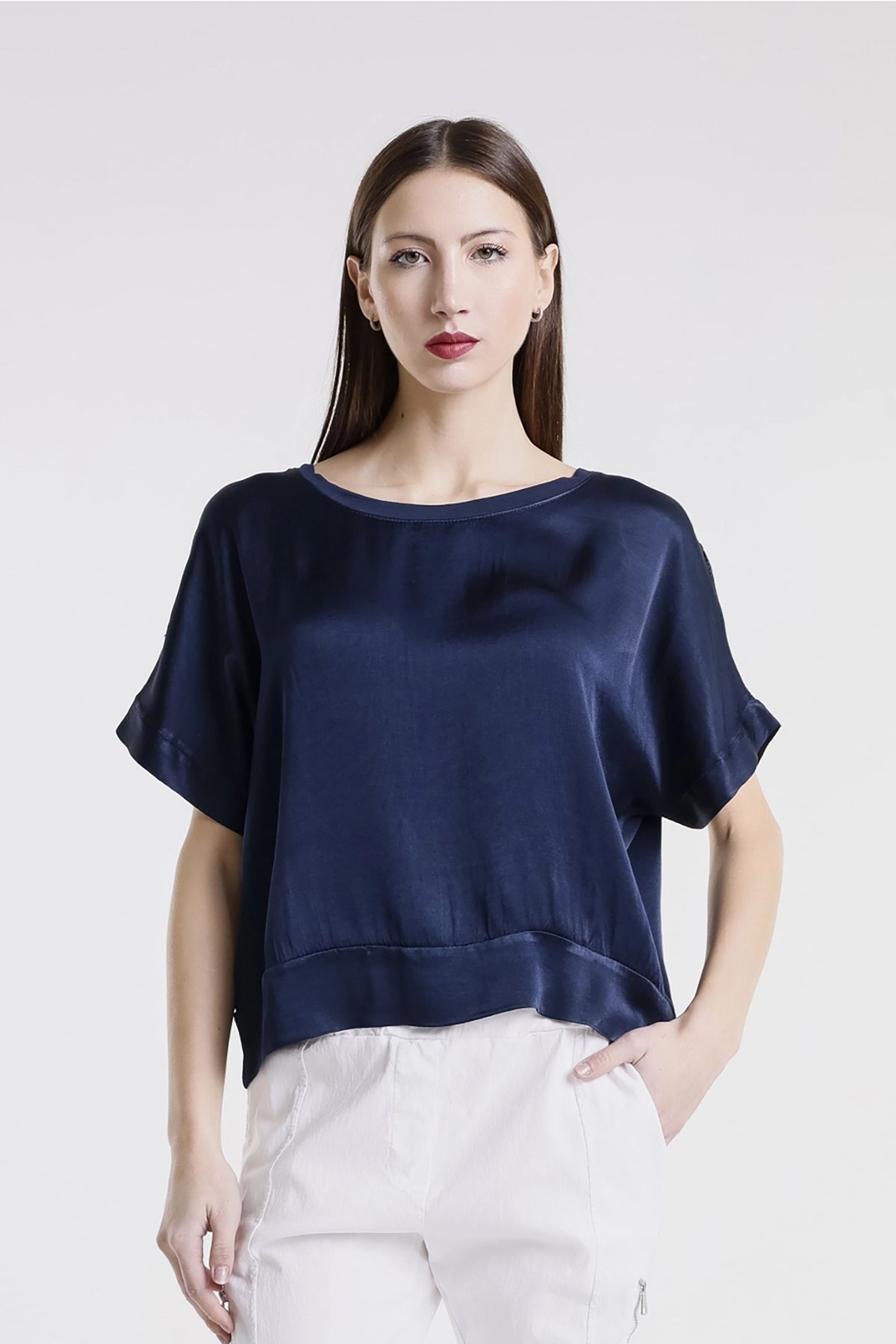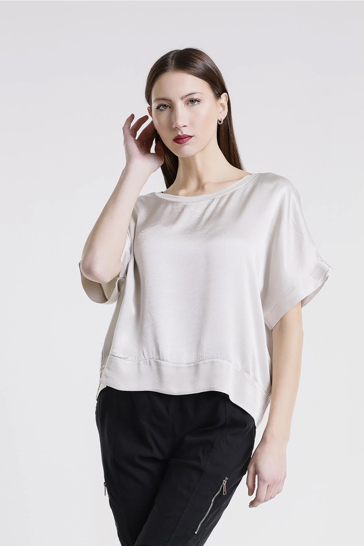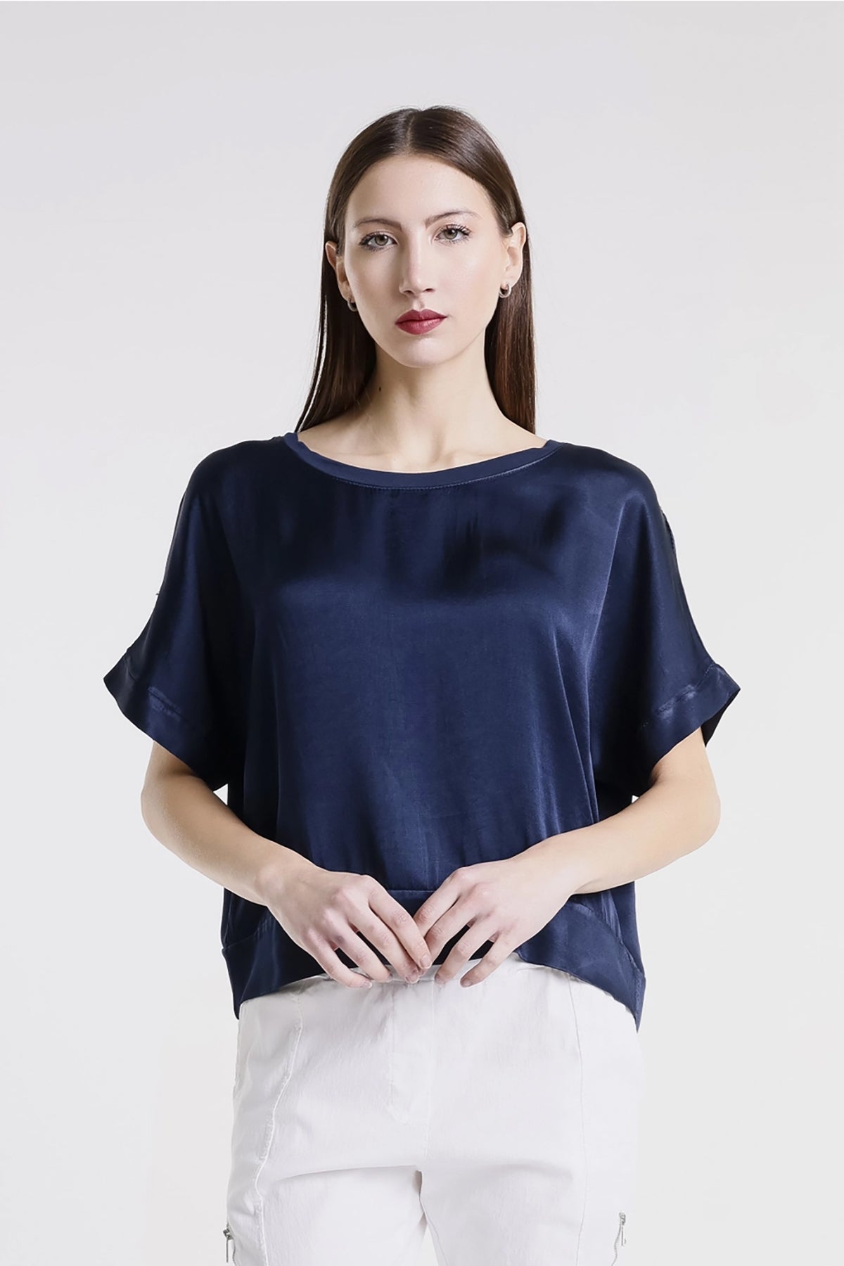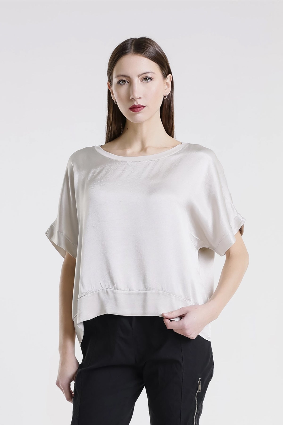 The Serena Top embodies timeless sophistication with its luxurious Italian construction and fluid viscose fabric. This refined piece features a lustrous satin front accented with elegant trim detailing, creating a polished silhouette that works beautifully from desk to dinner. The graceful drape and thoughtful design make it an indispensable addition to any wardrobe, offering the perfect balance of understated luxury and everyday wearability. Elevate your style with a top that celebrates both comfort and refinement.