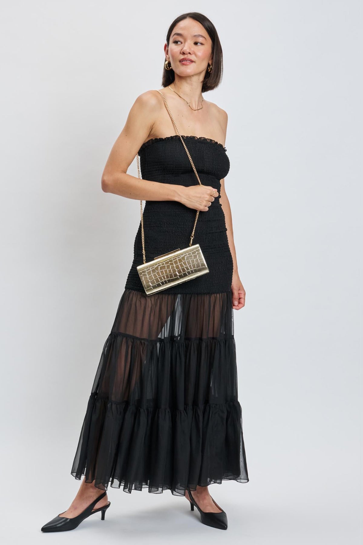 The Sienna Evening Bag is a stylish and elegant purse perfect for special occasions. It holds your essentials and adds a polished touch to your outfit.