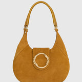 The Snake Ring Crescent Shoulder Bag features a stylish crescent shape and a bold snake ring detail. It’s perfect for carrying your essentials while adding a fashionable edge to any outfit.
