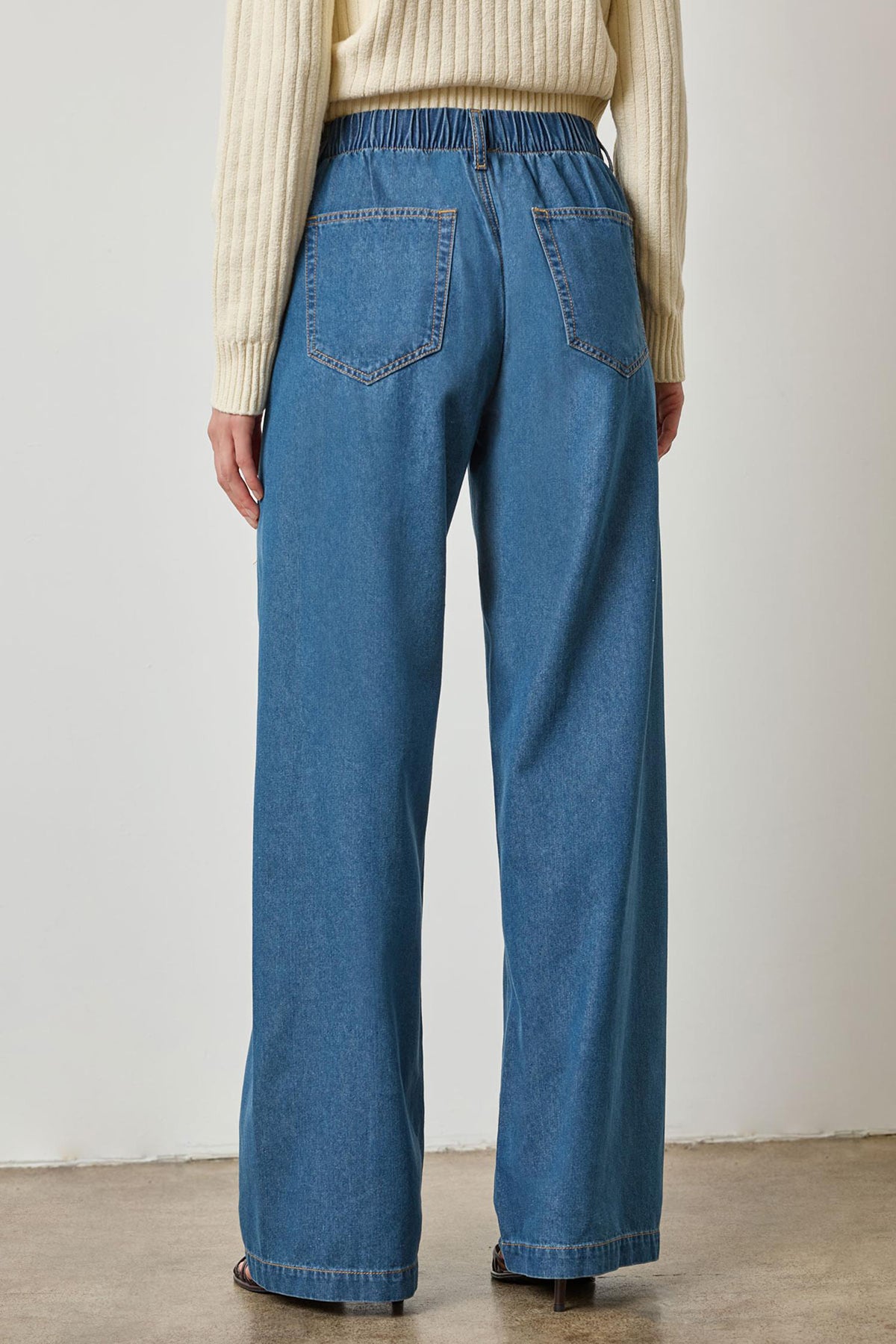 Classic denim straight leg pants with an adjustable drawcord waist for a custom fit. Versatile and timeless, they pair with anything in your closet - from a classic tee to chunky sweater - for effortless everyday style.