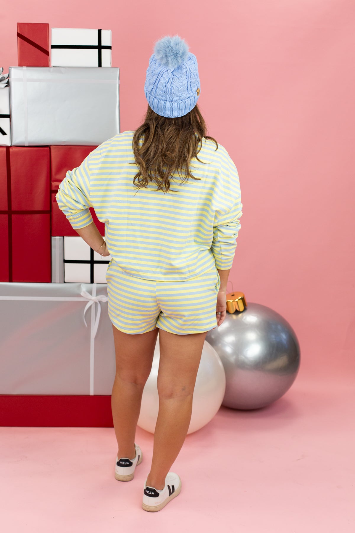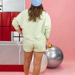 Plush striped terry lounge shorts with a relaxed fit. Perfect for lounging at home or casual outings with effortless style.