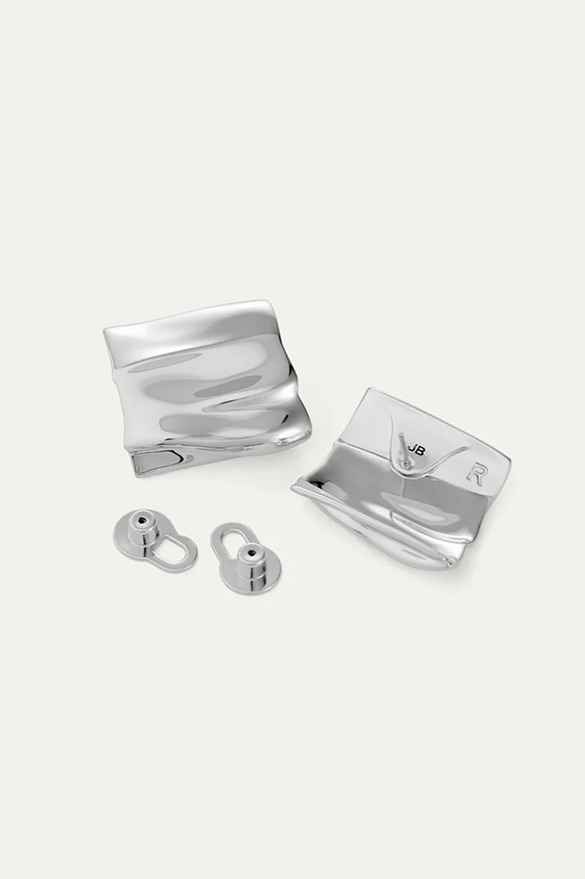 The Sundra Earrings feature silver square studs with a modern, stylish design that enhances any outfit.