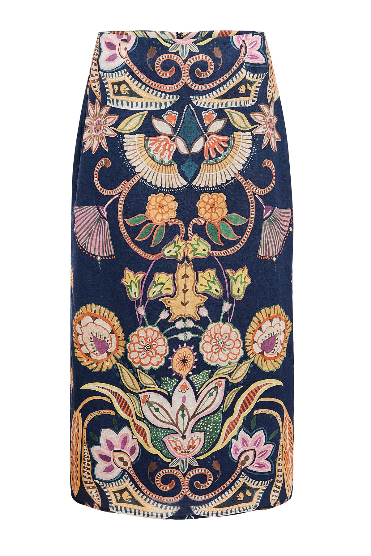 The Sutton Skirt brings artful pattern and fluid movement to a timeless midi silhouette. Designed to sway softly with each step, it delivers a refined yet expressive look that feels effortless and elegant.