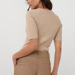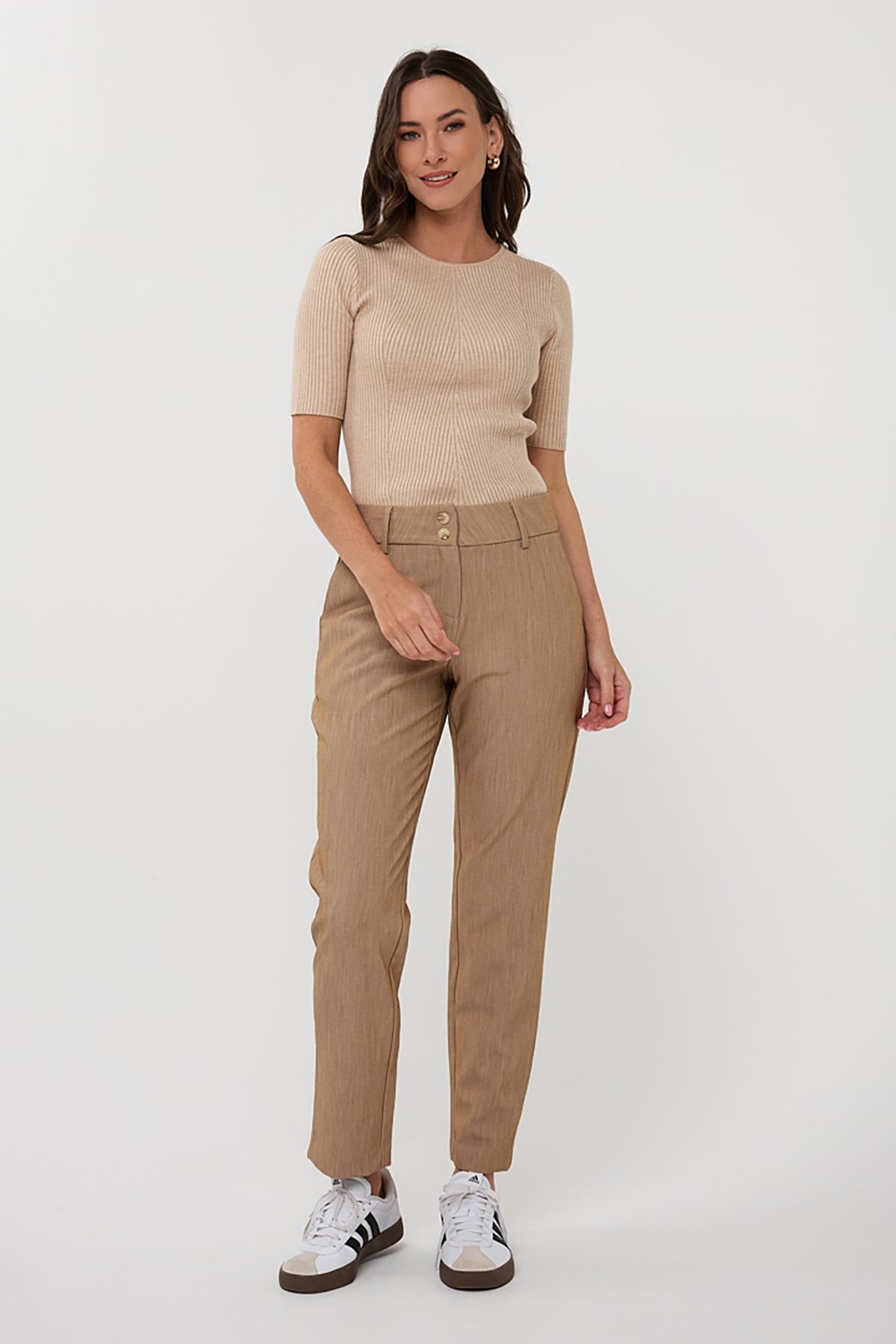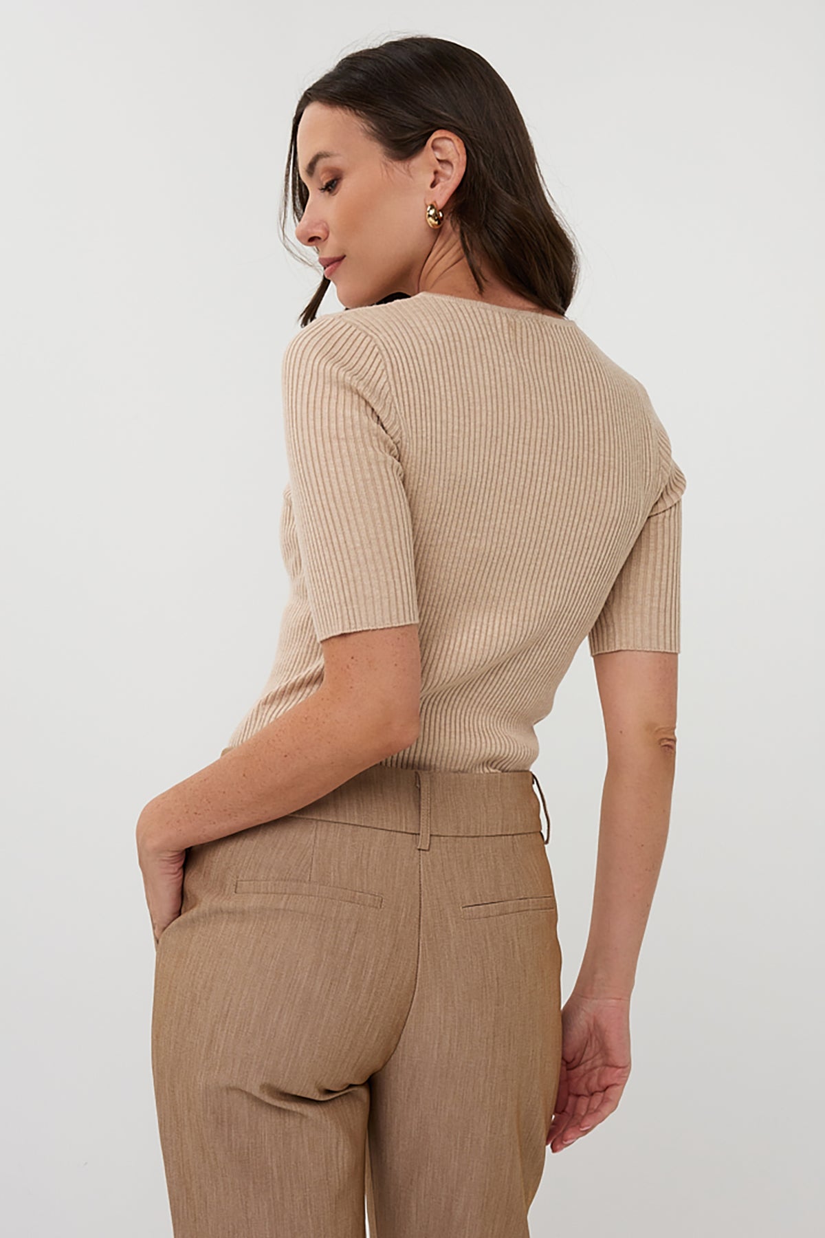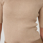 The Round Neck Rib Sweater features a classic round neckline and ribbed texture, combining comfort and style for any wardrobe.