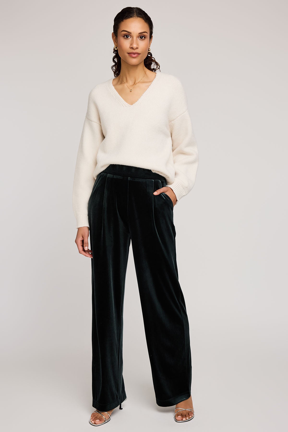 The Sylvia winter green velvet trousers feature soft fabric and a tailored fit, adding warm style to your winter outfits.