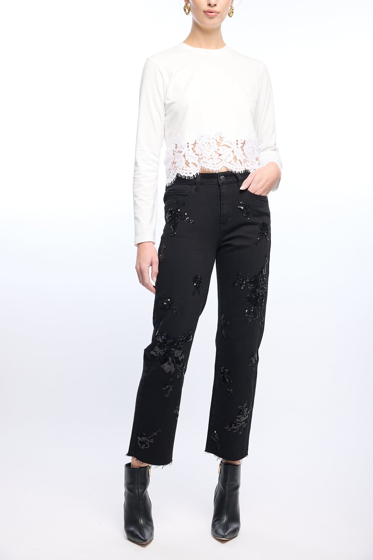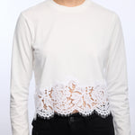 Effortless elegance meets modern edge with the Tabitha Lace Combo Top. Featuring delicate lace detailing along the hemline, this piece strikes the perfect balance between romantic and contemporary. The boxy, slightly cropped silhouette flatters multiple body types while offering a relaxed, on-trend fit that works equally well dressed up for evening or styled casually with your favorite denim. A versatile wardrobe essential that transitions seamlessly from season to season!