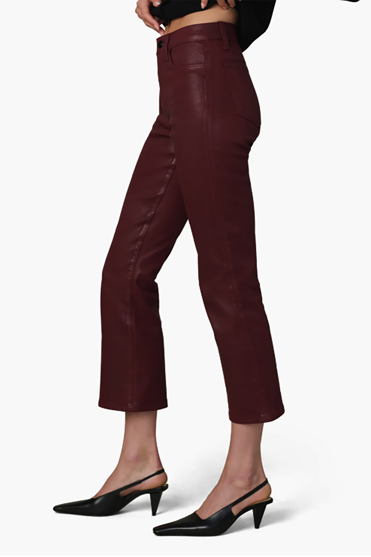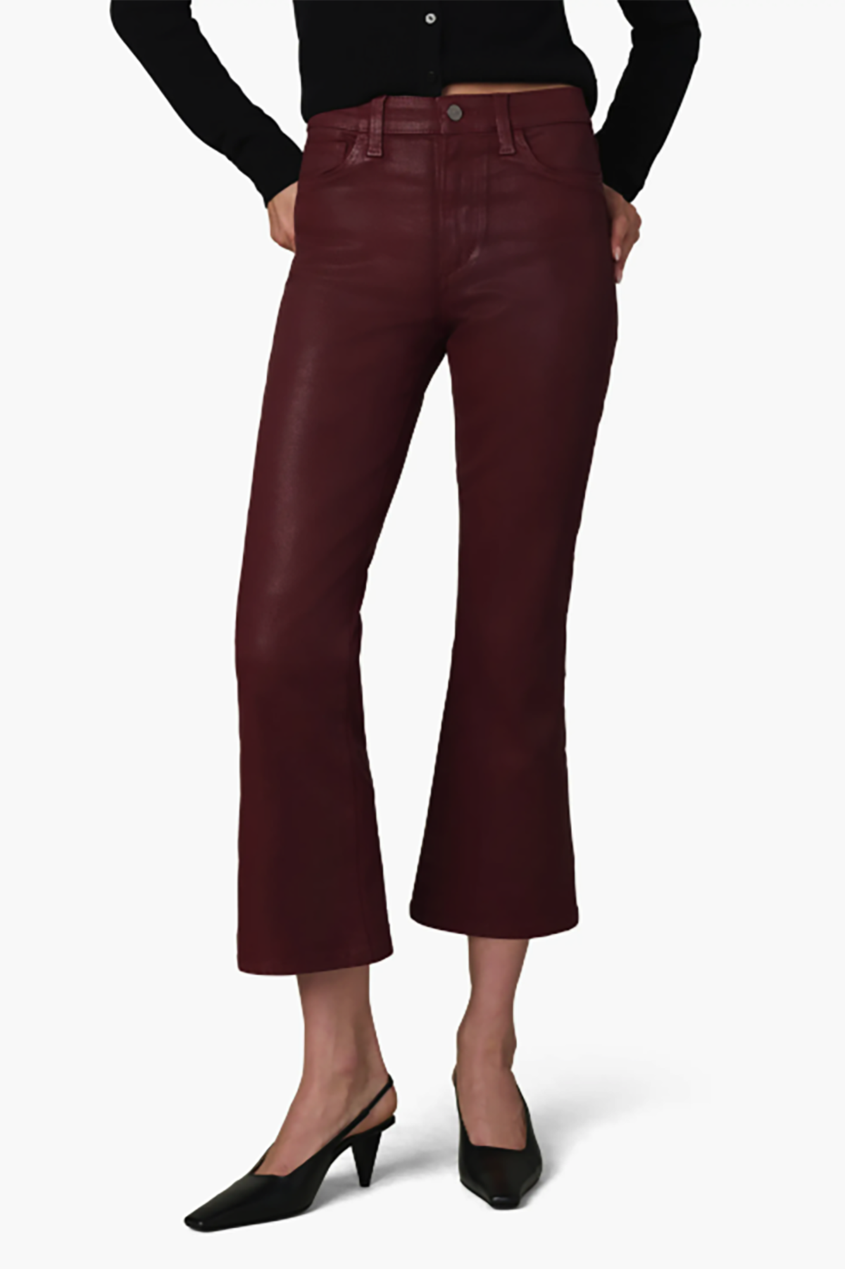 The Callie Cropped Bootcut Coated offers a stylish fit with a modern coated finish. Its cropped bootcut shape pairs well with boots or heels for a chic, versatile look.