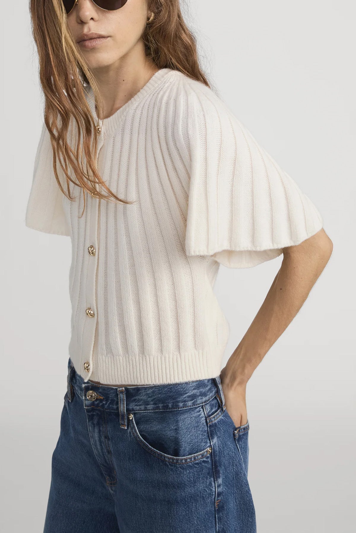 Lightweight and softly draped, the Flutter Cardigan adds graceful movement to an easy layering piece. The delicate shape and refined knit make it a versatile option for both casual and polished looks.