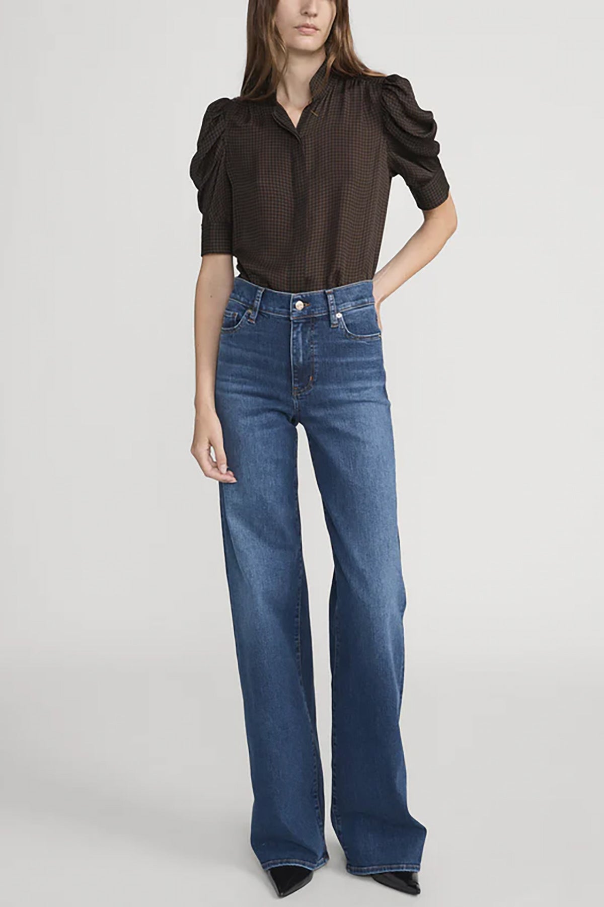 The Houndstooth Gillian Top brings timeless sophistication to your everyday wardrobe. This classic piece features a striking houndstooth pattern that effortlessly transitions from office to weekend wear. The tailored silhouette flatters your frame while the quality fabric ensures all-day comfort and durability. Perfect for layering or wearing solo, the Gillian Top pairs beautifully with tailored trousers, denim, or skirts. A versatile essential that elevates any outfit with understated elegance and refined style.
