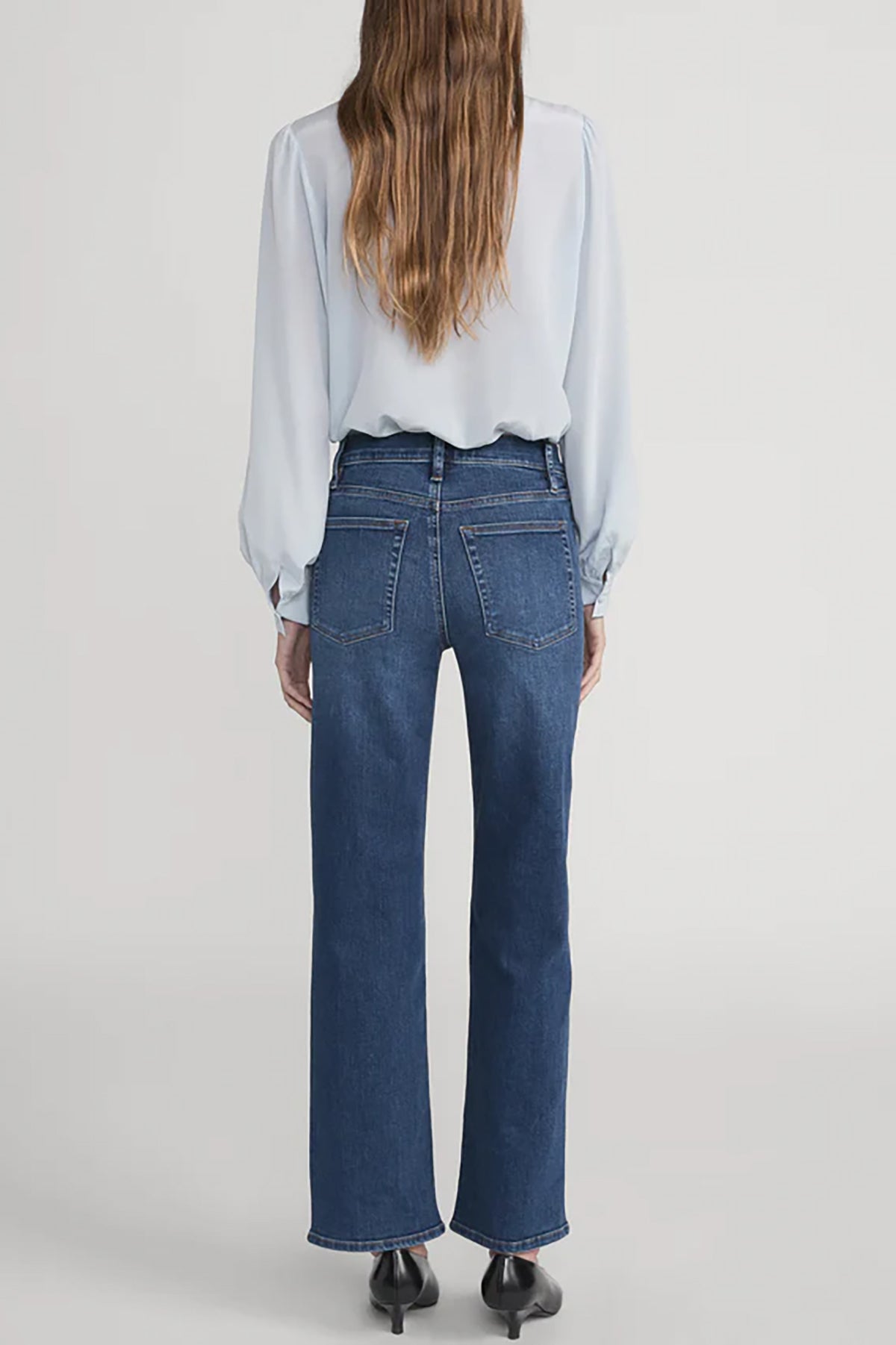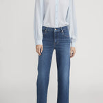 The Mellow is a mid-rise denim with ultra-stretch fabric that recovers beautifully. Made from a sustainable blend of organic and recycled materials, it features a 10" front rise, 27.5" inseam, and 18" leg opening for a flattering fit.