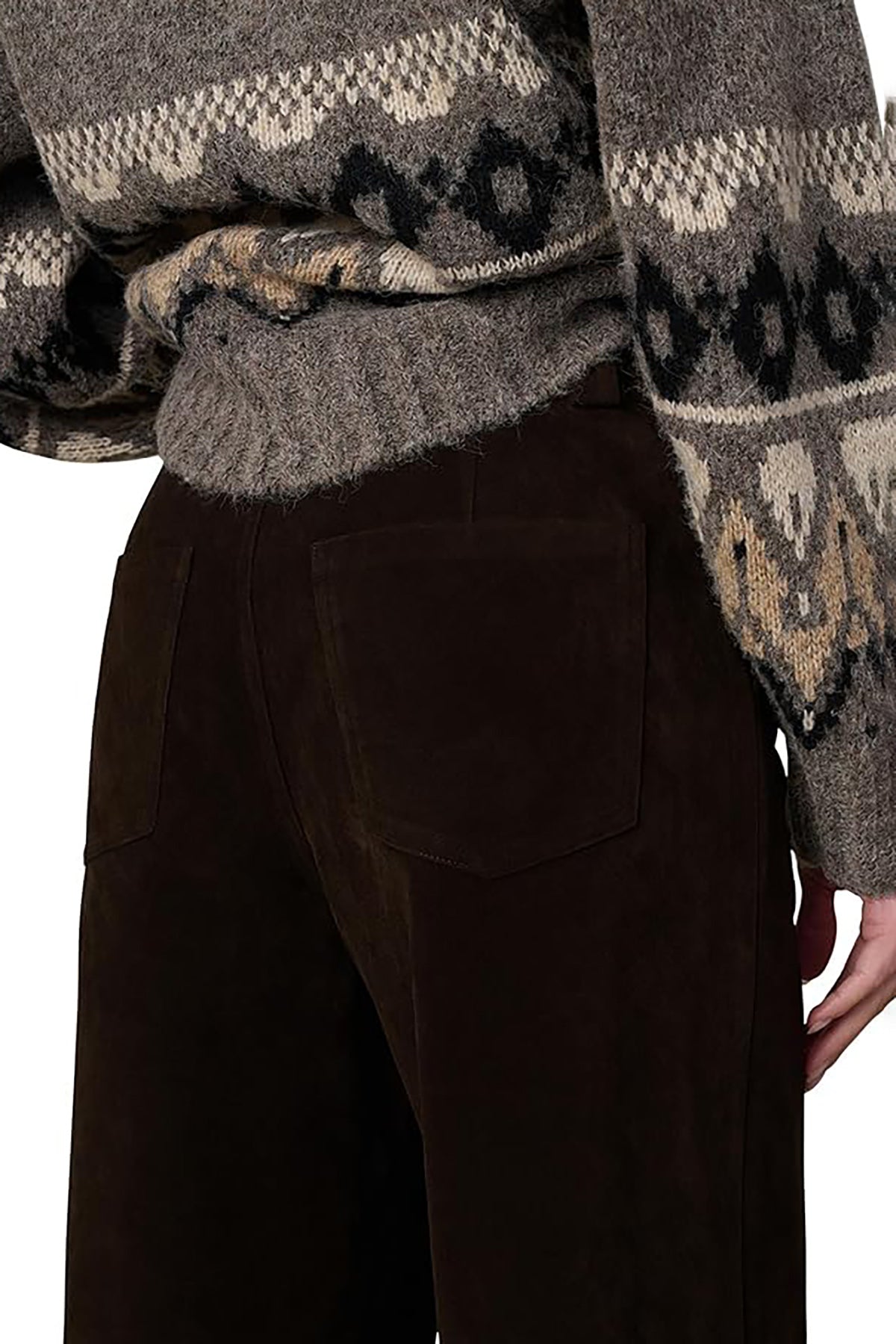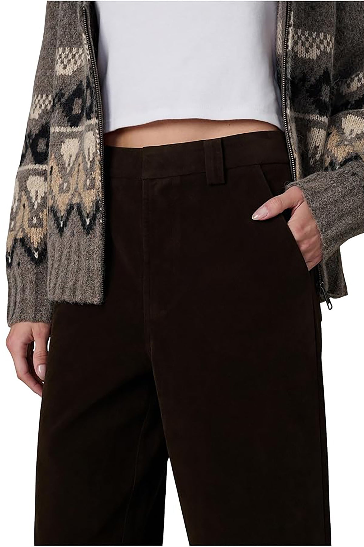The Mia Ankle Vegan Suede in dark chocolate is a stylish, ankle-length boot cut pant made from soft, vegan suede. Its rich color and smooth feel make them perfect for casual or dressy looks!