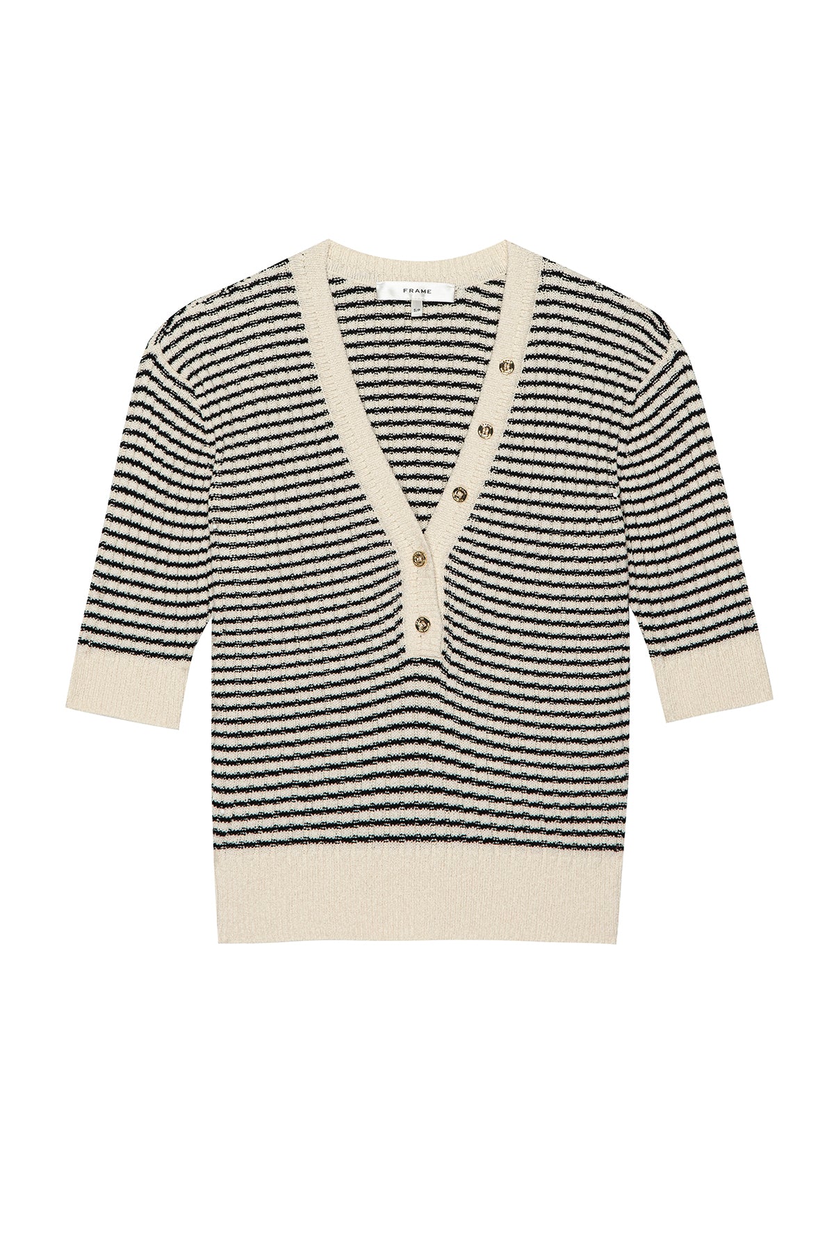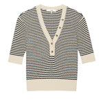 The Stripe V-Neck Sweater combines comfort and style with a classic v-neck and subtle stripes. Perfect for layering or wearing alone, it offers warmth and breathability for any occasion.