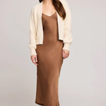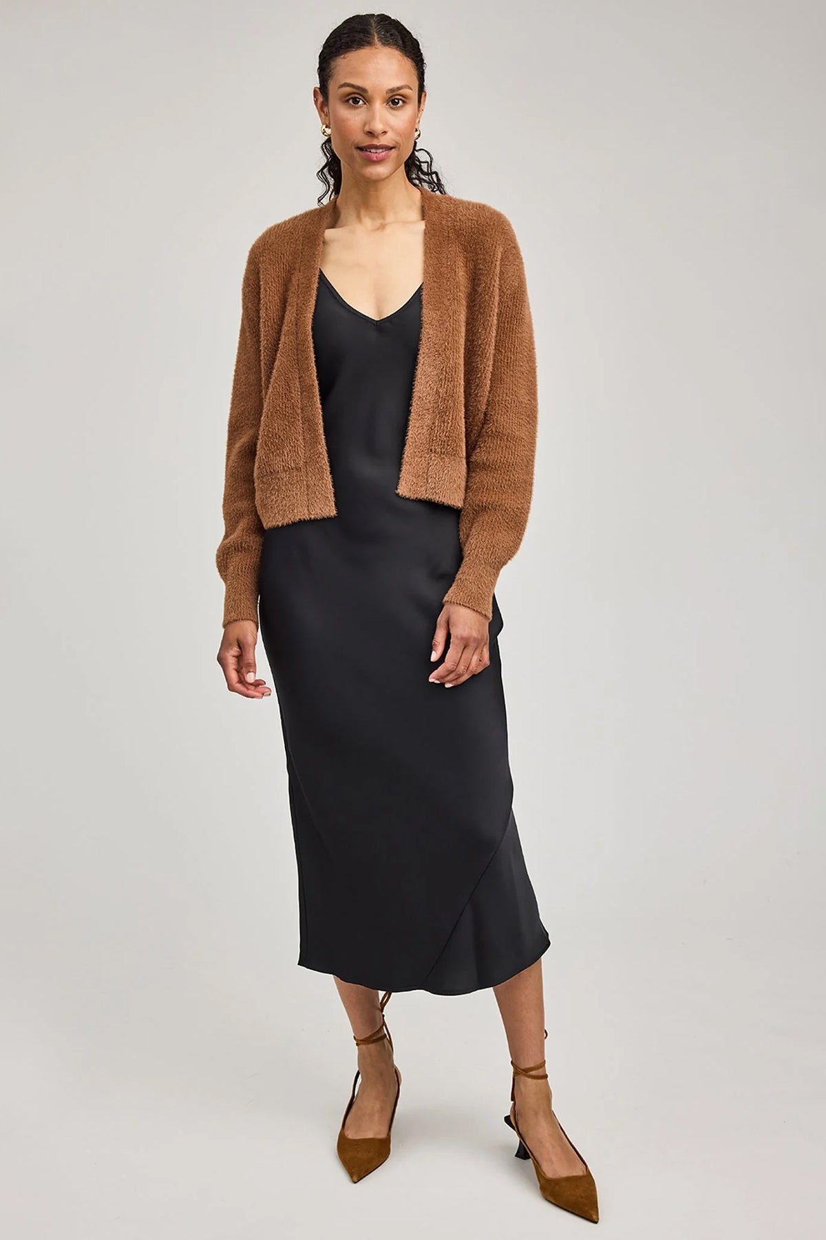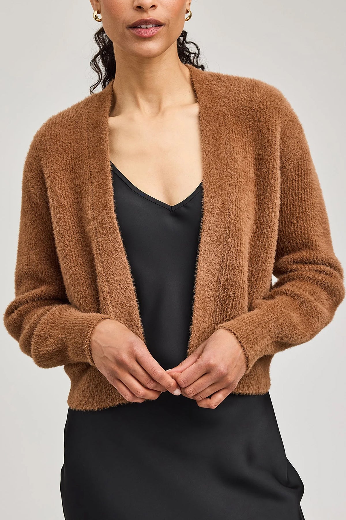 Theodora is a timeless soft chestnut cardigan that effortlessly layers over any outfit. The warm, neutral tone complements a variety of styles while the plush fabric provides comfort for everyday wear. Perfect for transitional seasons or layering year-round, this piece brings understated elegance to casual and polished looks alike.