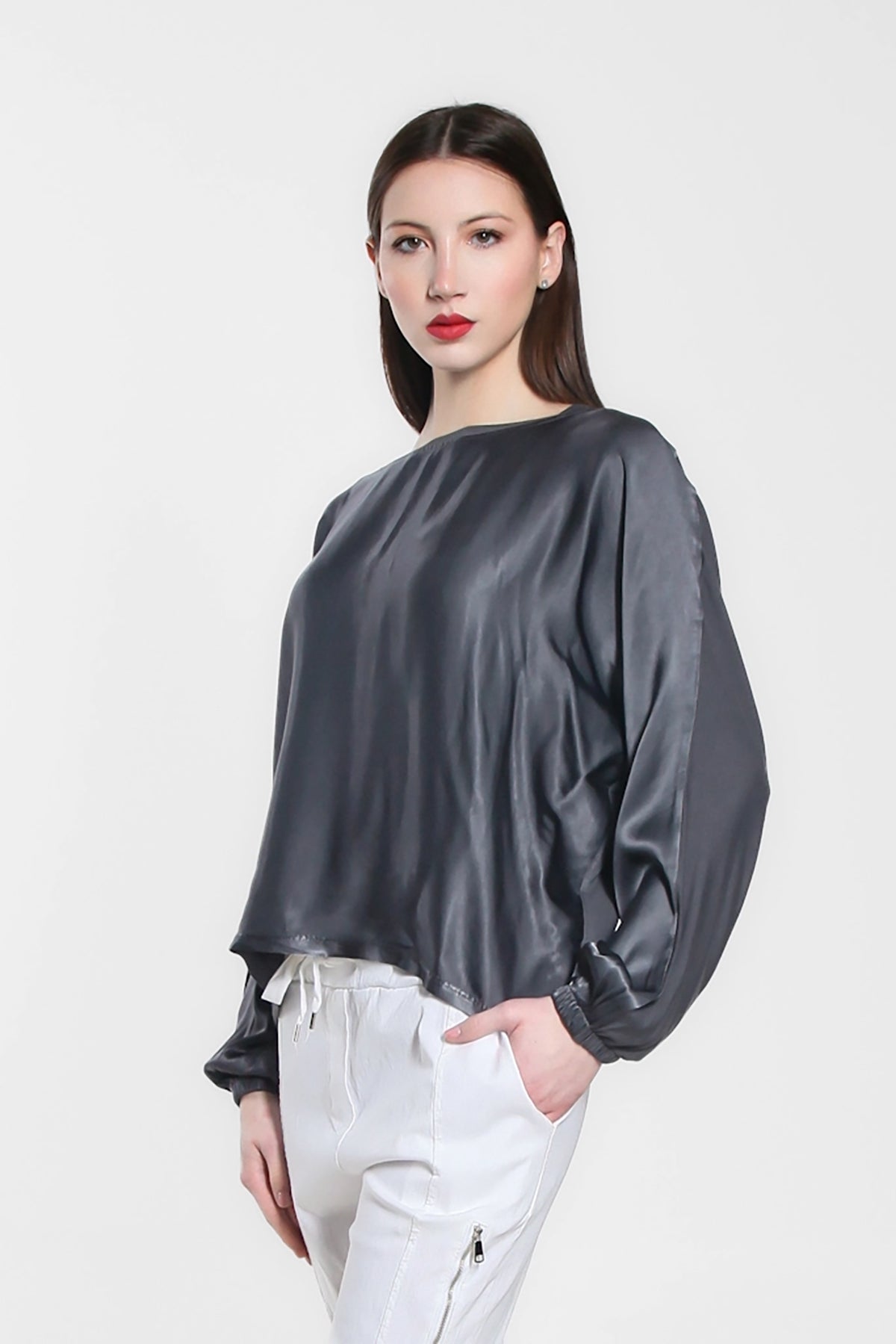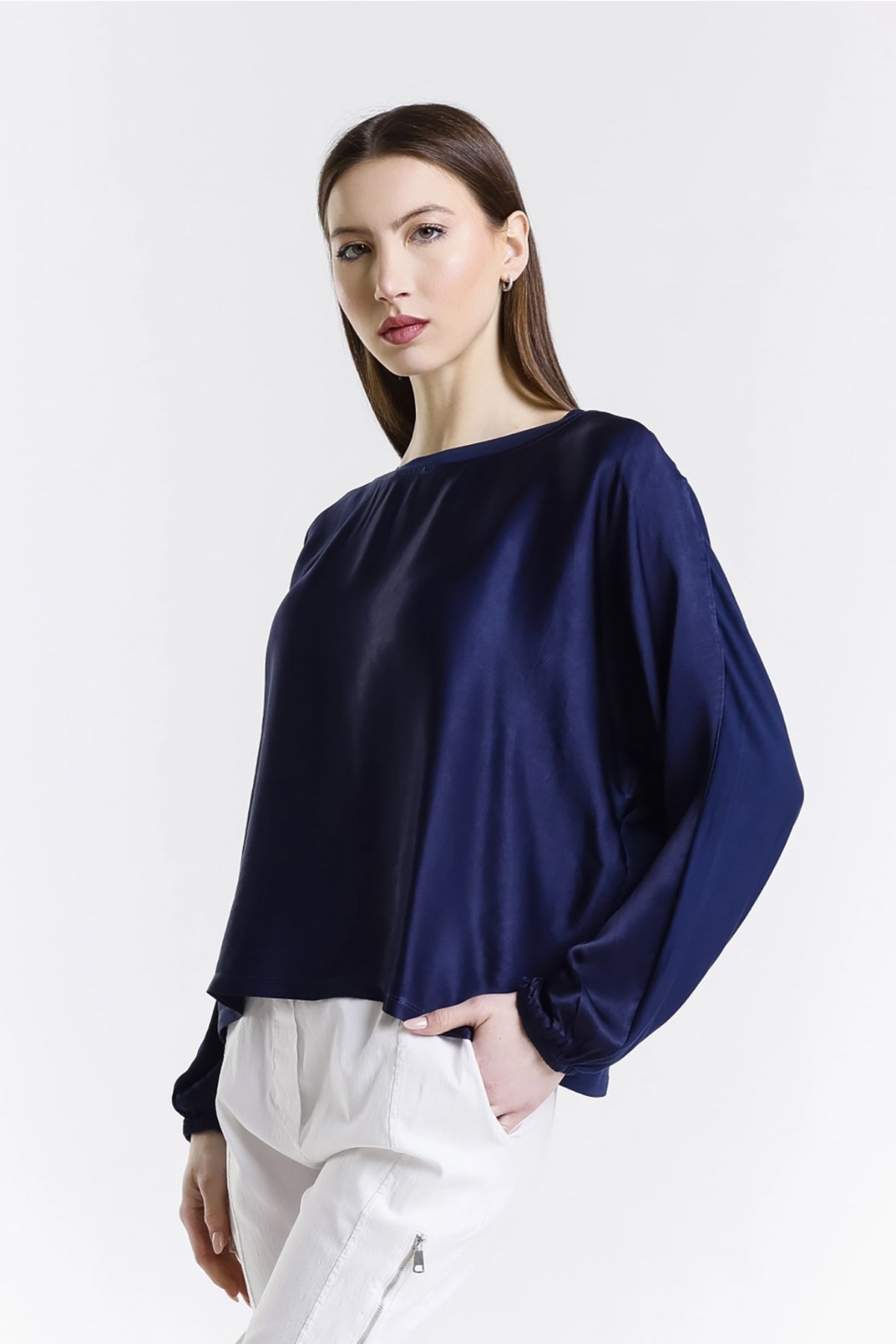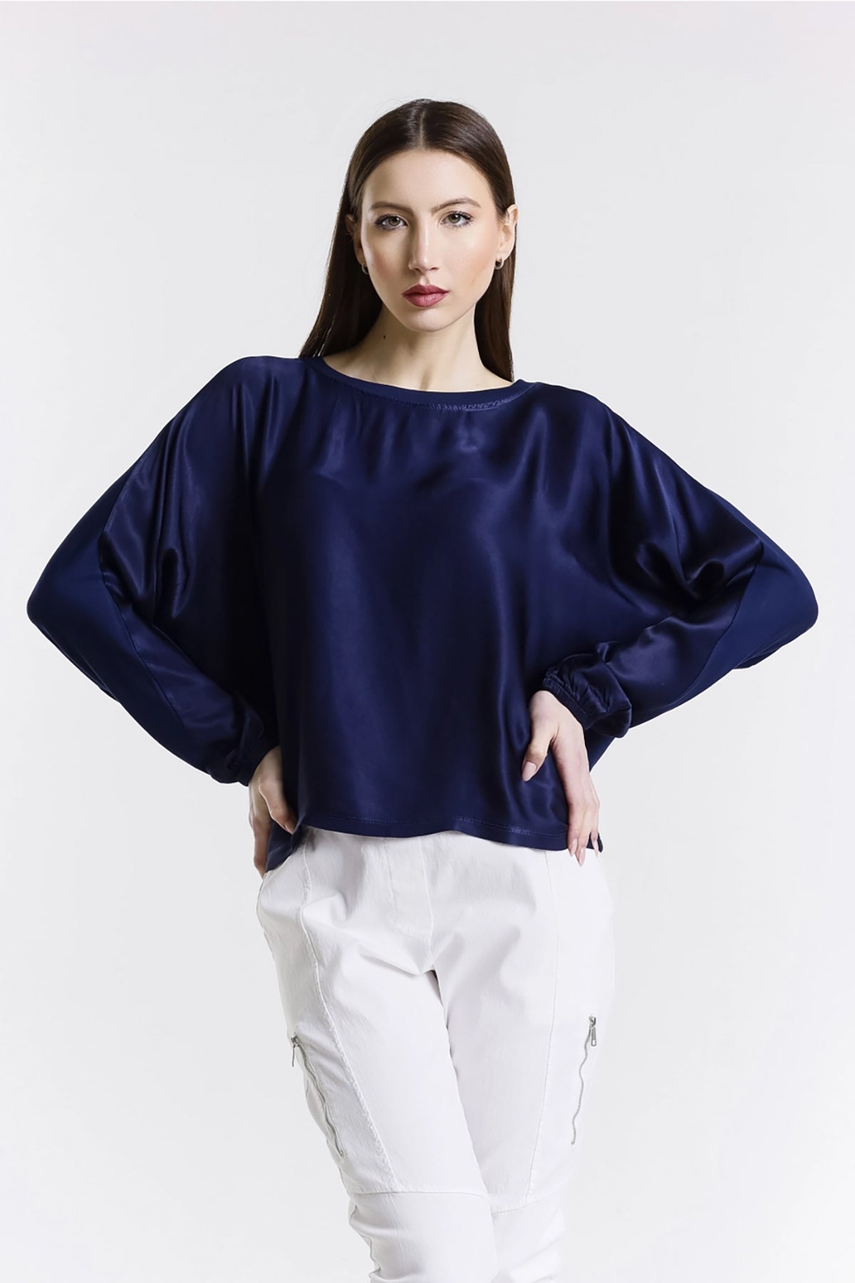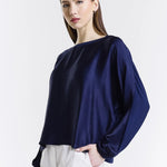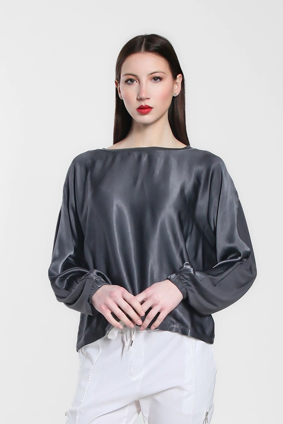 This elegant blouse combines the best of both worlds with its silky front panel and stretchy knit backing, delivering effortless sophistication and all-day comfort. The gracefully tapered long sleeves add a refined touch, while the Italian craftsmanship ensures premium quality. Versatile enough to transition seamlessly from the office to evening occasions, this piece is a wardrobe essential for the modern woman who refuses to compromise on style or comfort.