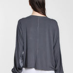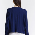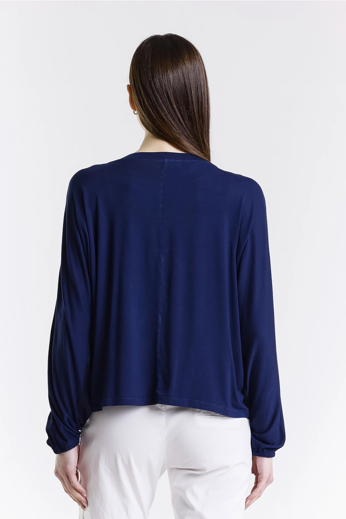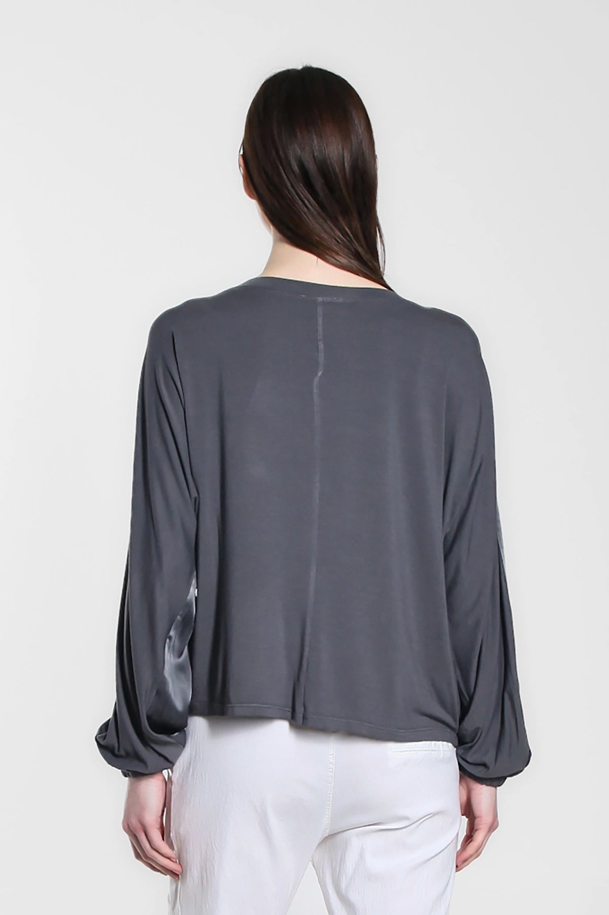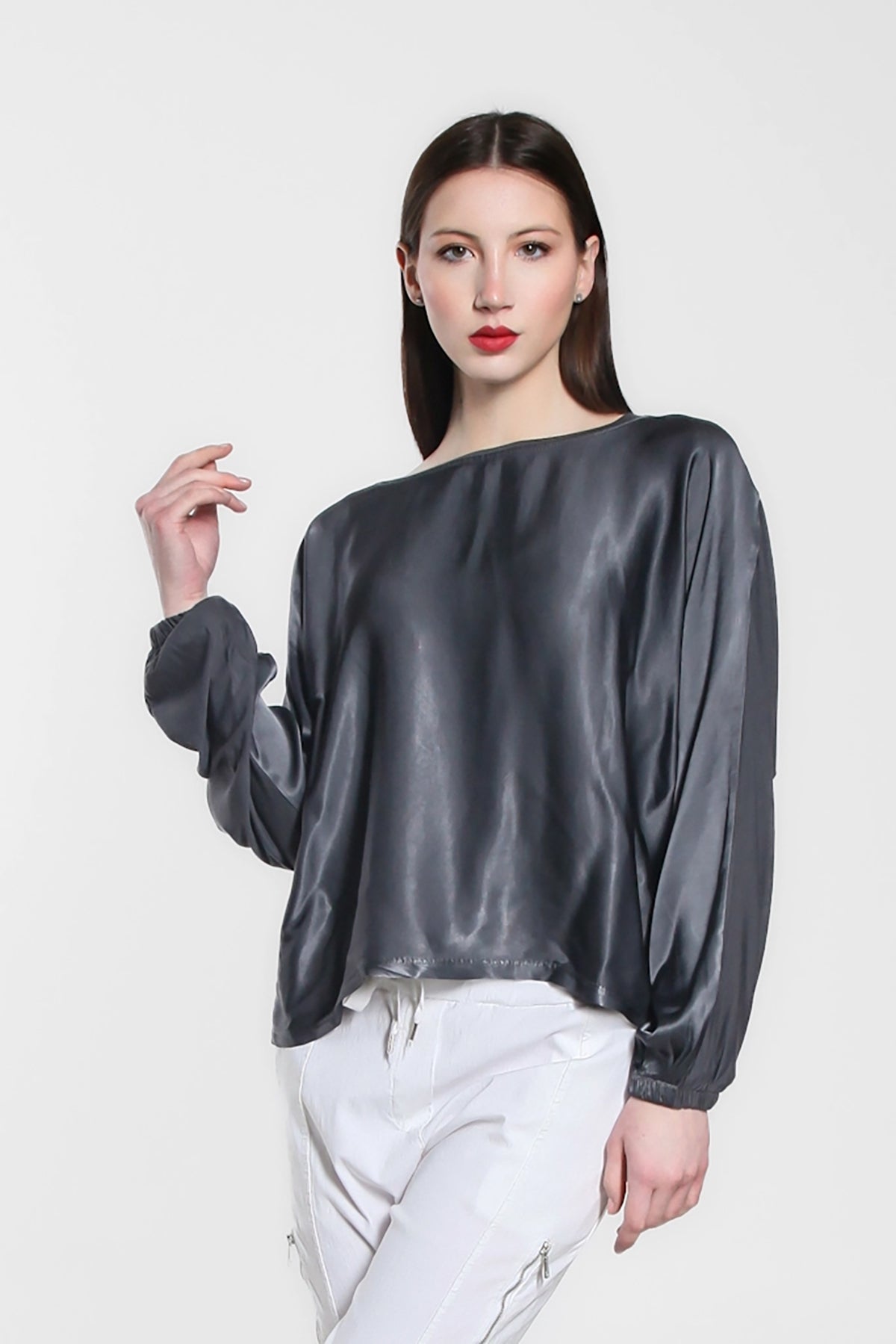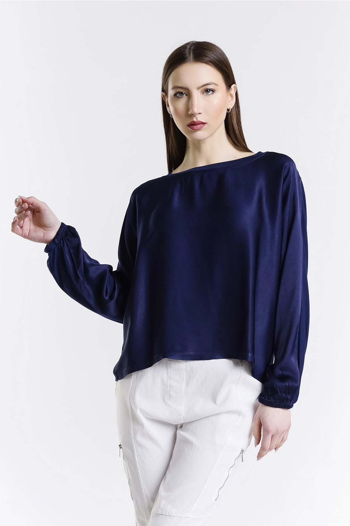 This elegant blouse combines the best of both worlds with its silky front panel and stretchy knit backing, delivering effortless sophistication and all-day comfort. The gracefully tapered long sleeves add a refined touch, while the Italian craftsmanship ensures premium quality. Versatile enough to transition seamlessly from the office to evening occasions, this piece is a wardrobe essential for the modern woman who refuses to compromise on style or comfort.