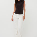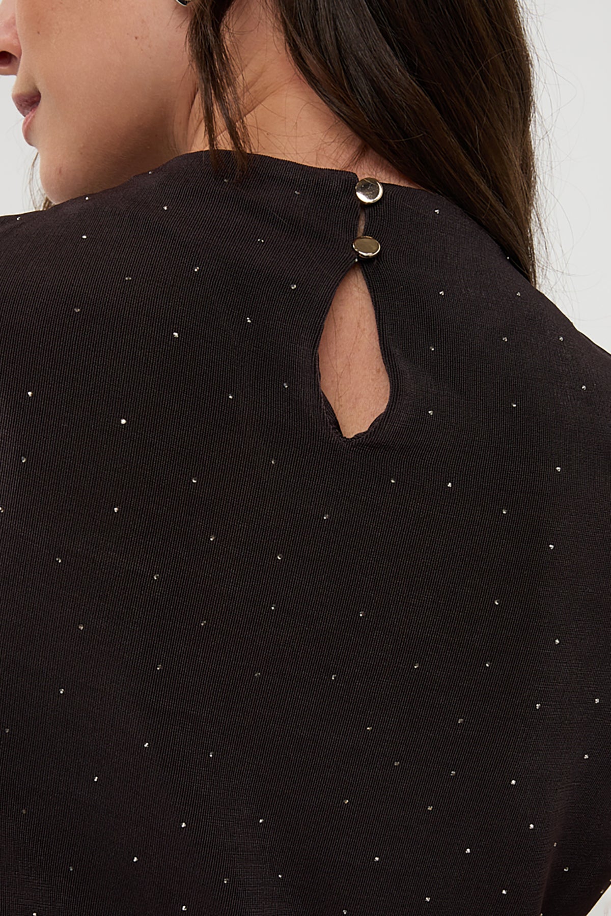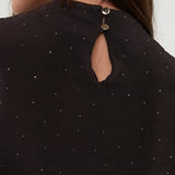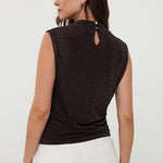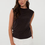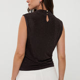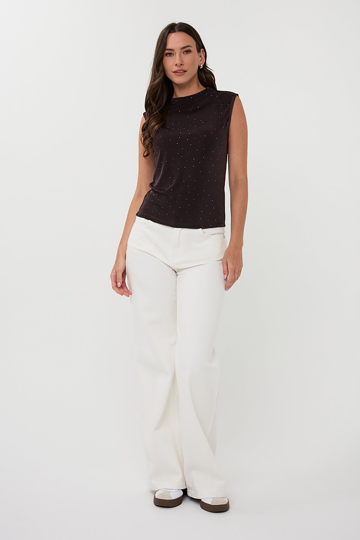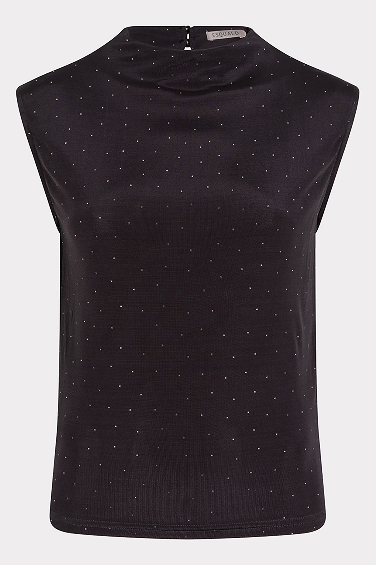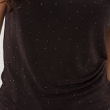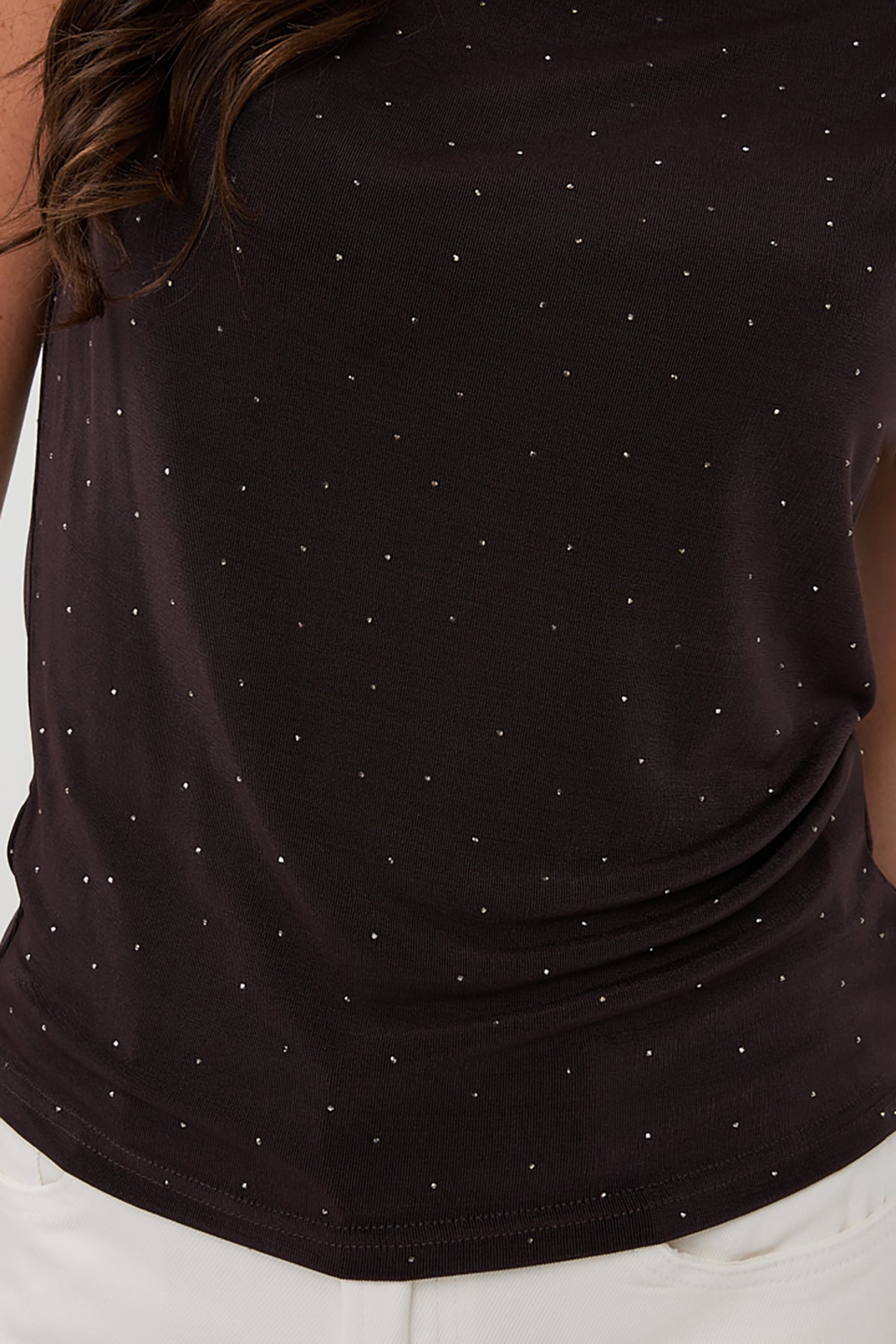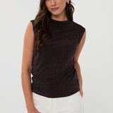 The Top Strass Blouse is a grey sleeveless top with subtle studs, ideal for both casual and dressy styles.