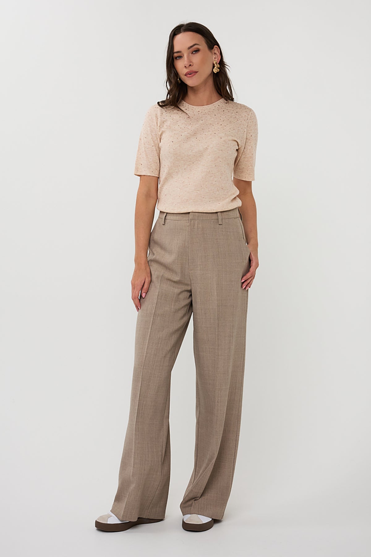 Taupe wide leg trousers offer a stylish, comfortable fit that pairs well with any outfit for both casual and dressy occasions.