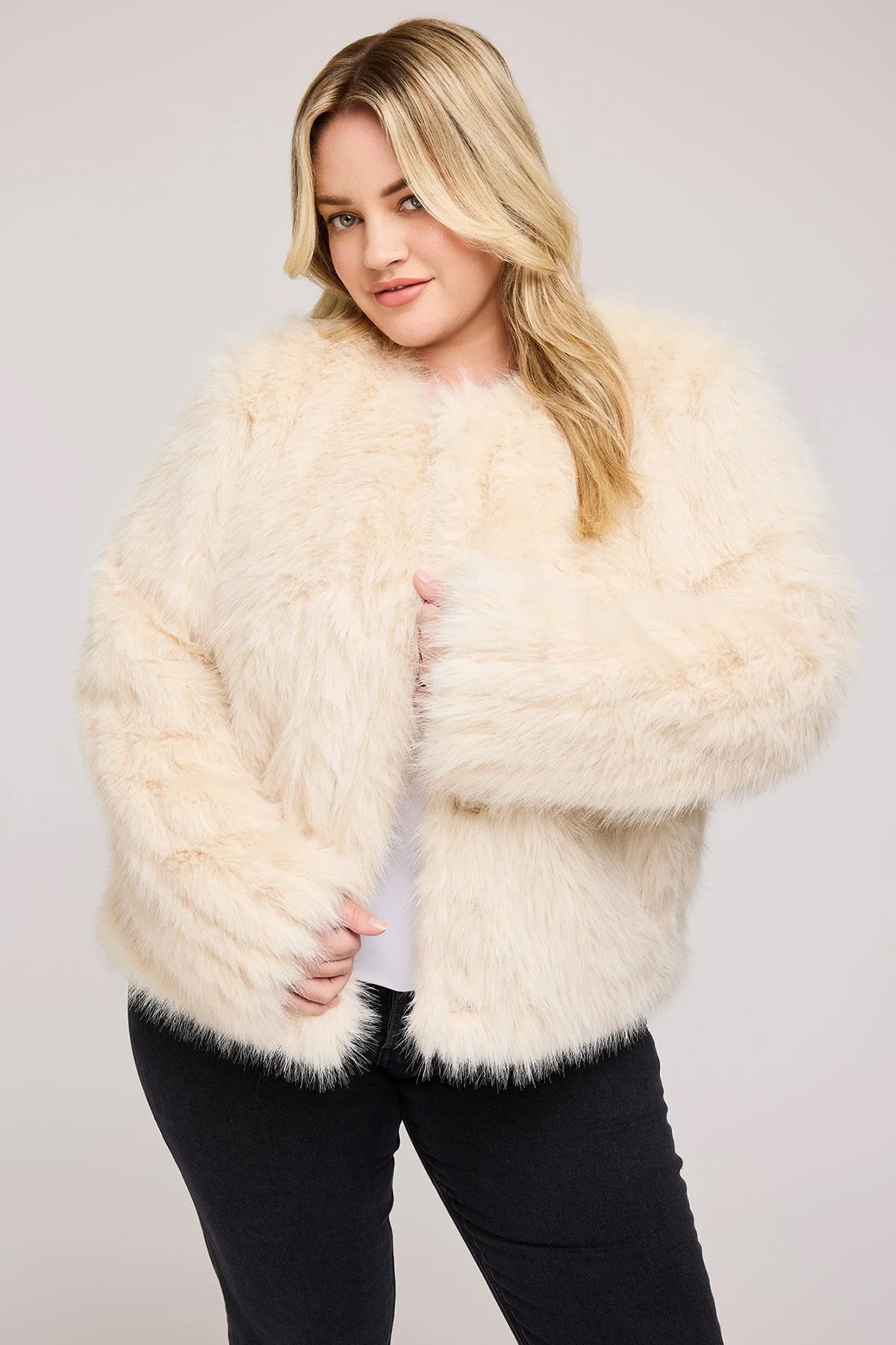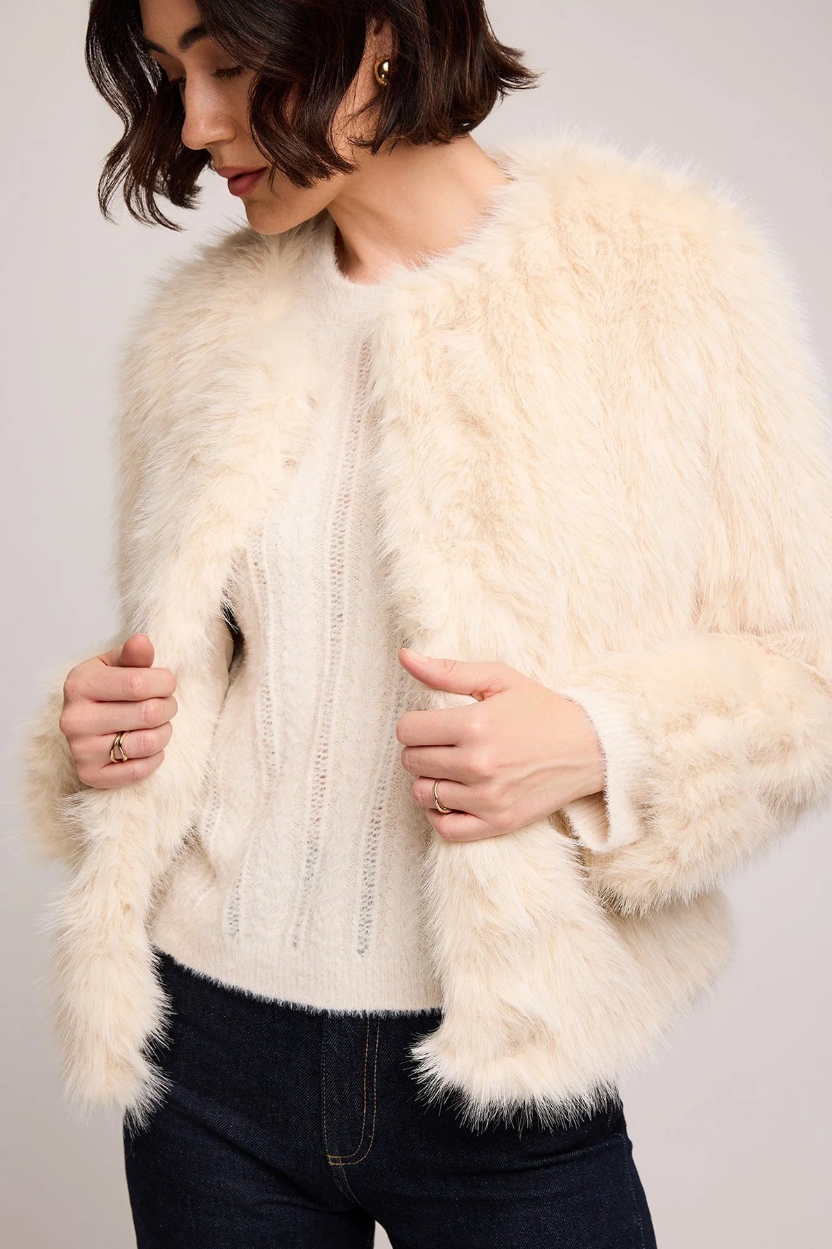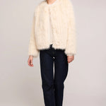 The Uma is a cream fur jacket with a sleek, collarless design that adds instant glamour to any outfit. Layer it over dresses or casual wear for a polished, sophisticated look that works day or night.