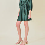 Make a statement in this hunter green mini dress, designed with a flattering V-neckline and romantic puff sleeves that add dimension and movement. The surplice bodice creates a refined silhouette while quarter sleeves offer the perfect balance of coverage and style.