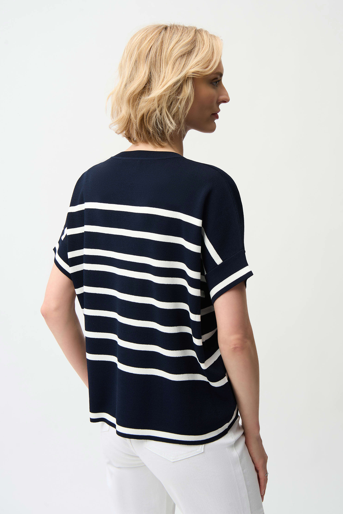 Viscose Blend Stripe Print Short Sleeve Sweaterby Joseph Ribkoff