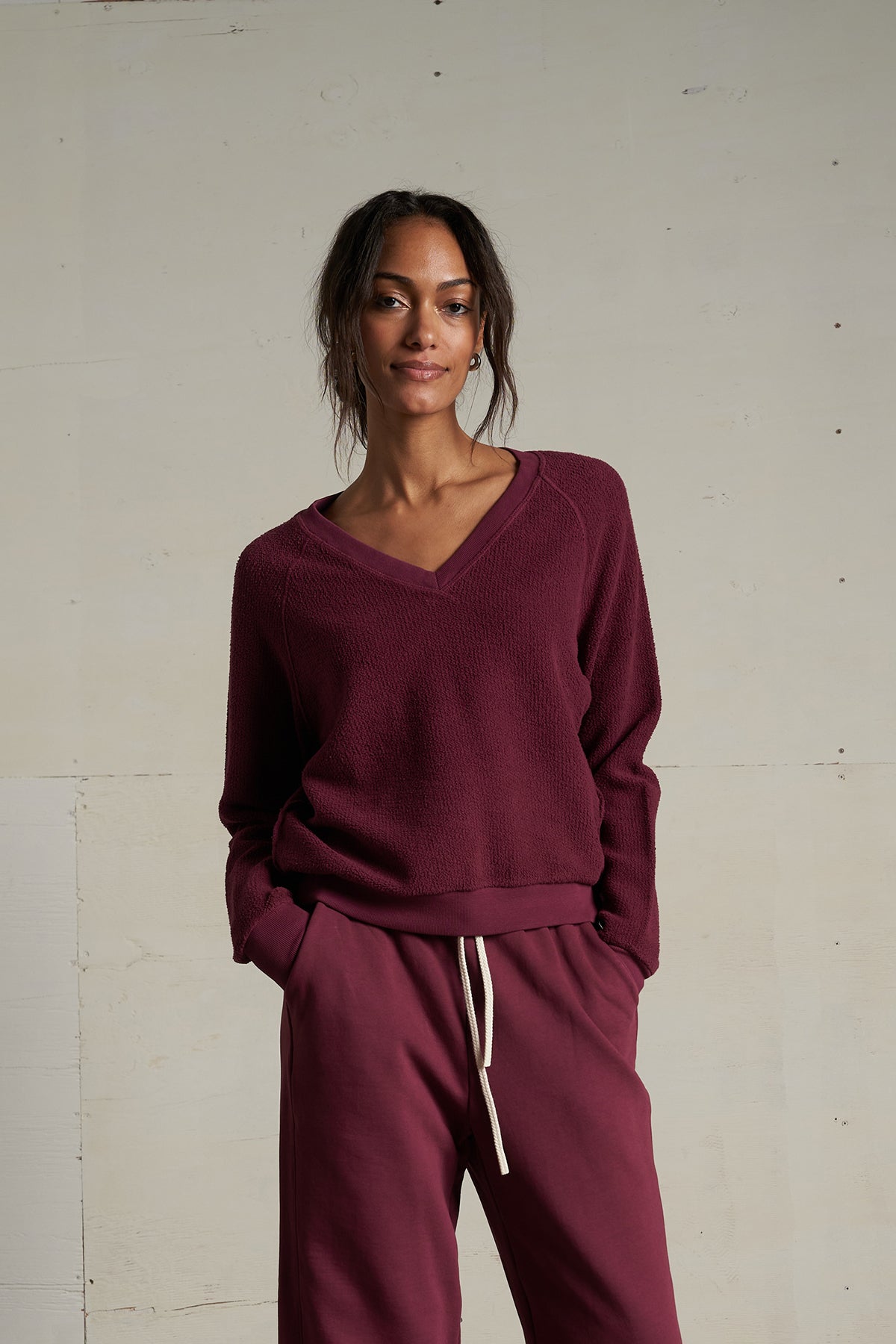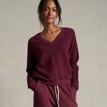 A classic burgundy V-neck sweater that's versatile and flattering. Layer it or wear it solo for effortless style any season.